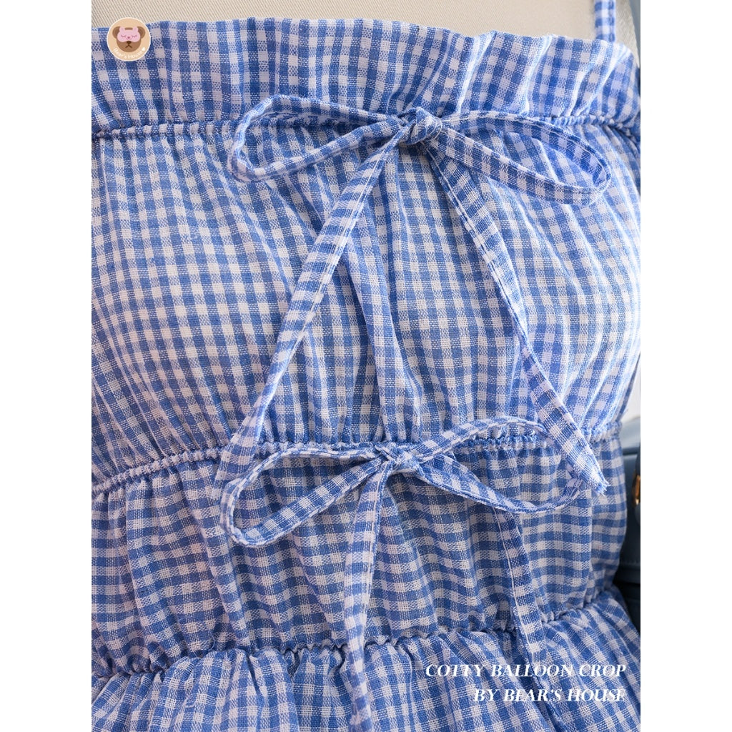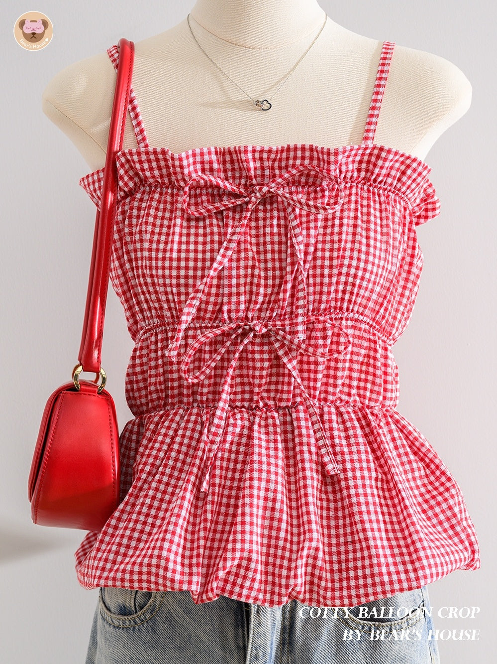 Add some fun to your wardrobe with our Cotty Balloon Crop! This tank top is made from plaid fabric with smocked detailing all around for a unique, balloon-shaped fit. Complete with a self-tying bow tie, you can easily dress it up or down by pairing it with skirts or pants. Plus, it's just too cute! ❤️