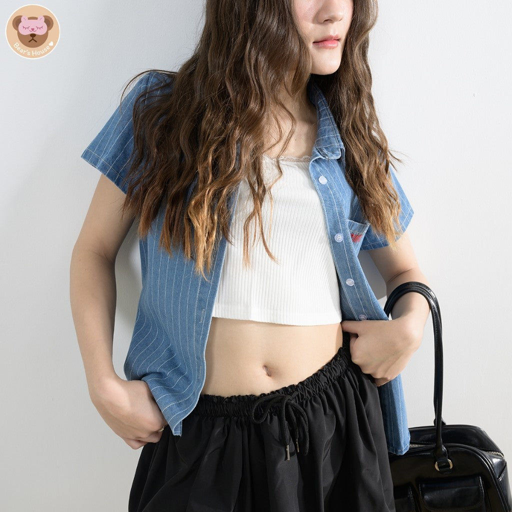Jarinya Danim Shirt เสื้อเชิ้ตเเต่งกระเป๋าปัก Jarinya ยีนส์เเท้ เนื้อผ้าดี ทรงสวย เเมทกับกระโปรงหรือกางเกงก็ได้ค่ะ น่ารักมากกก❤️❤️