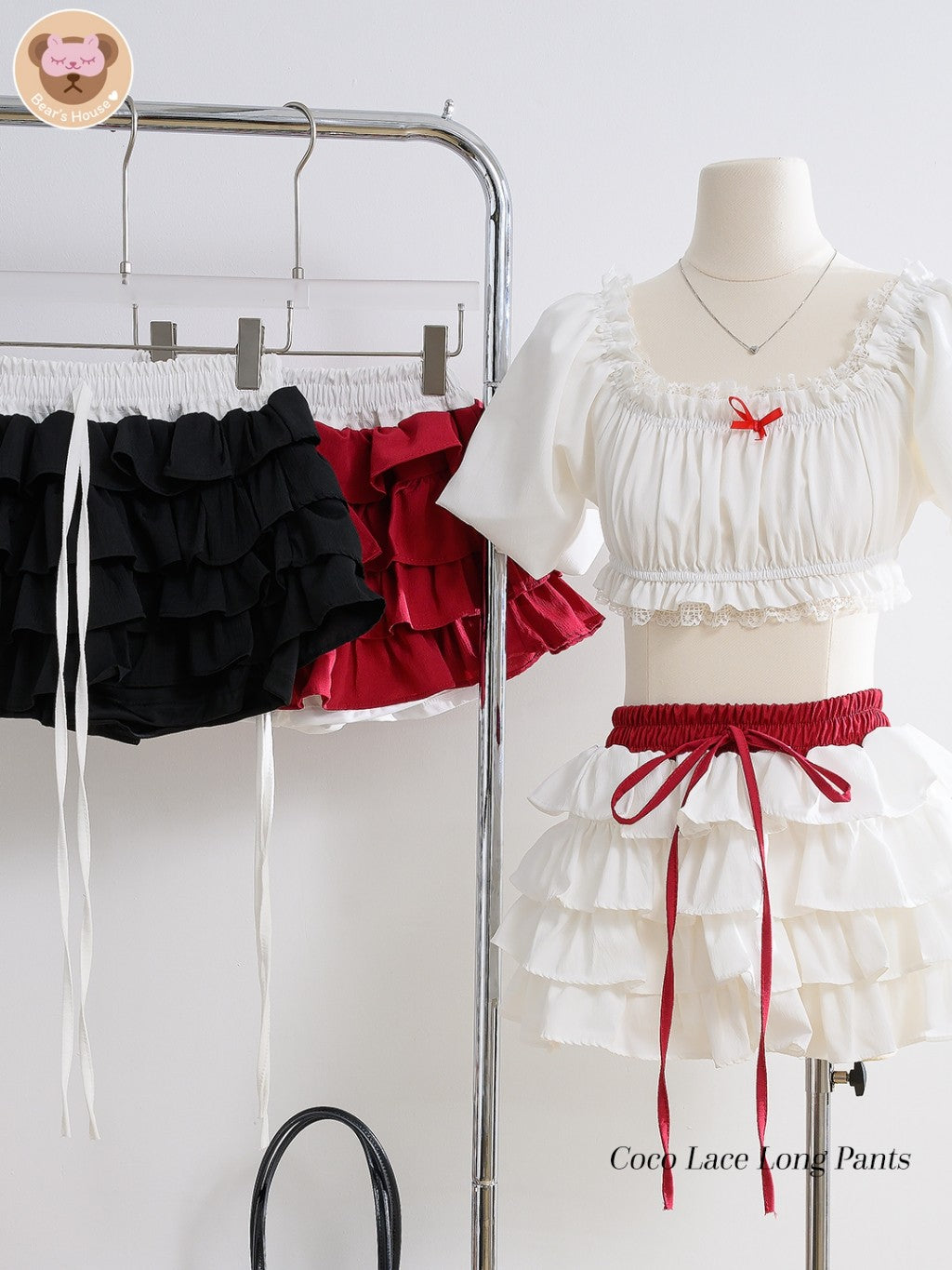 Jessi Skirt กางเกงกระโปรงระบาย 4 ชั้น ฟรุ้งฟริ้งมุ้งมิ้ง ดีเทลเเต่งเชือกผูกโบว์ด้านหน้า มีซับในกางเกง ไม่ต้องกลัวโป๊ แมทช์ง่ายยย น่าร้ากกกมากค่า❤️