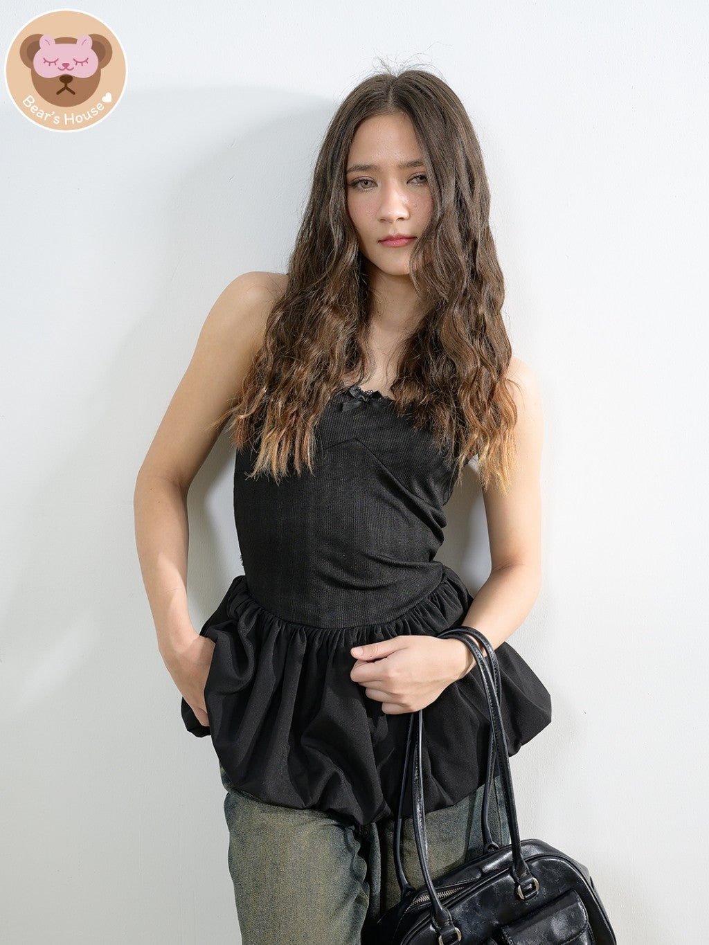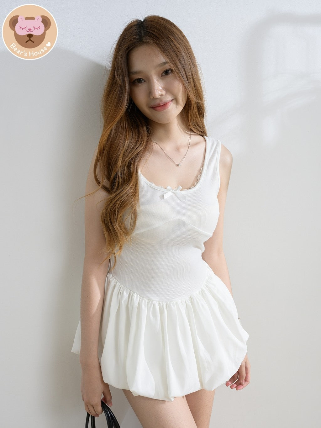 Juicy Mini Dress เดรสกระโปรงบอลลูน ดีเทลเป็นผ้ายืดตัดต่อกระโปรงทรงบอลลูน