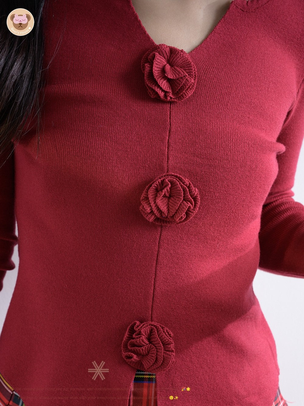 Lena Top เสื้อไหมพรม เเขนยาวเเต่งกุหลาบ ดีเทลปลายเสื้อสโลป เเต่งดอกกุหลาบ