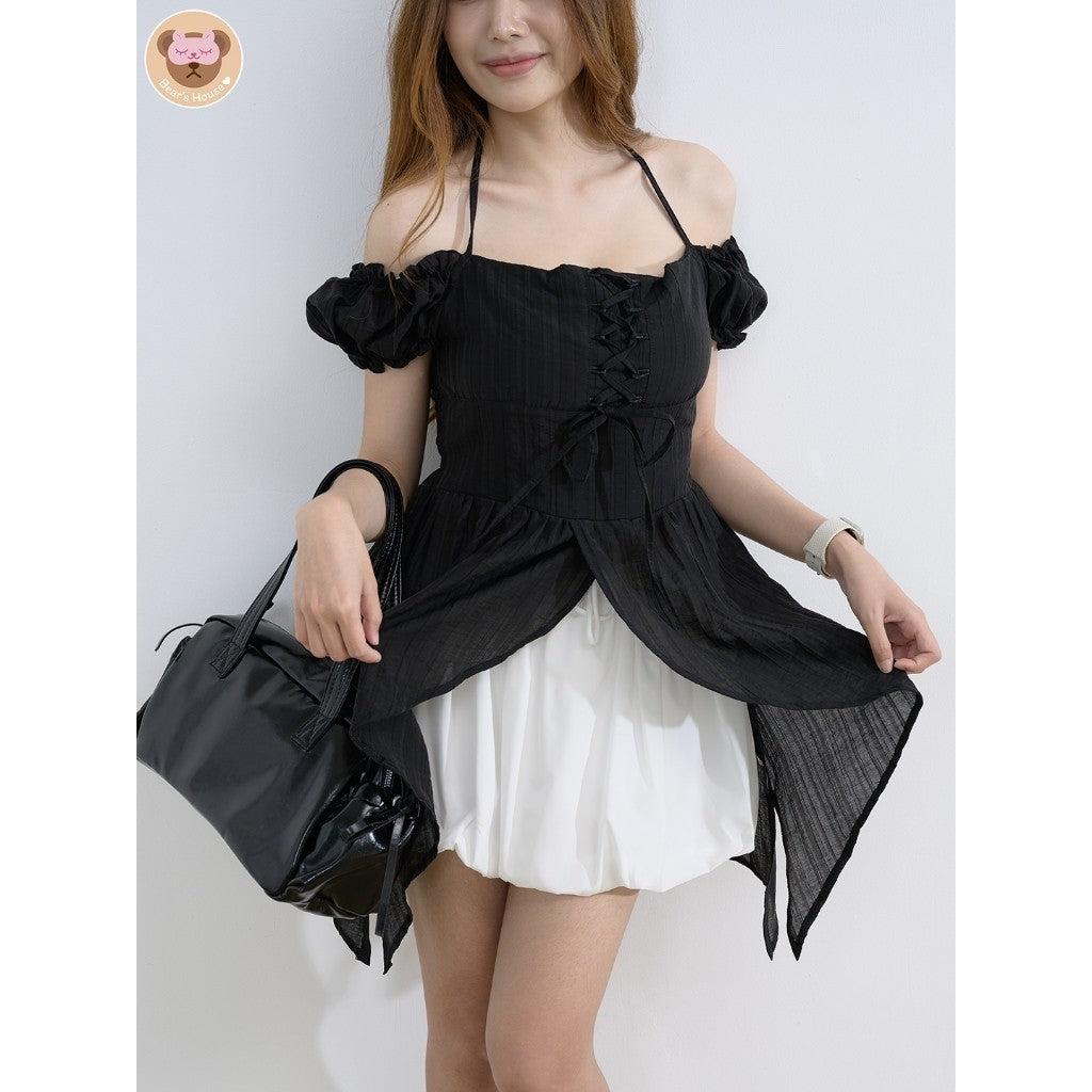 ด้วยเชือกถักด้านหน้า จะใส่เป็นปาดไหล่ก็ได้น้า เเมทกระโปรงหรือกางเกงยีนส์ขายาวก็ได้น่ารักสุดๆเลยค่า❤️