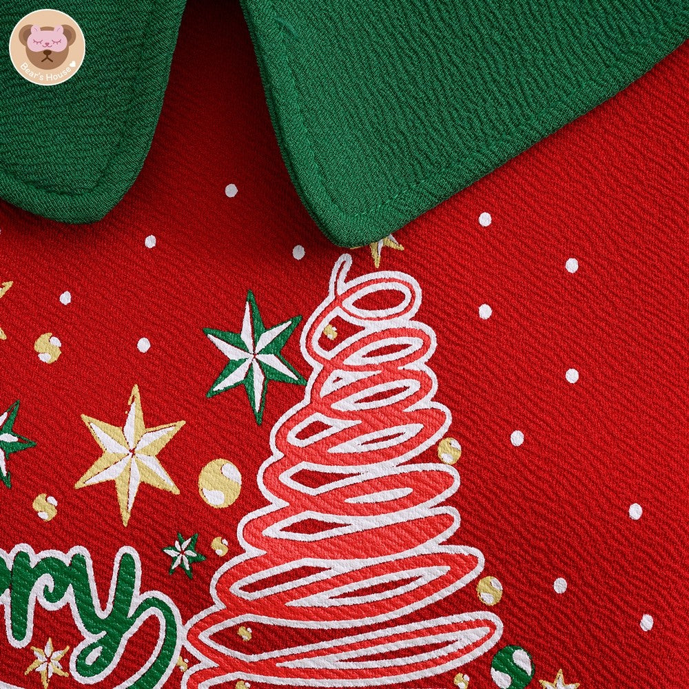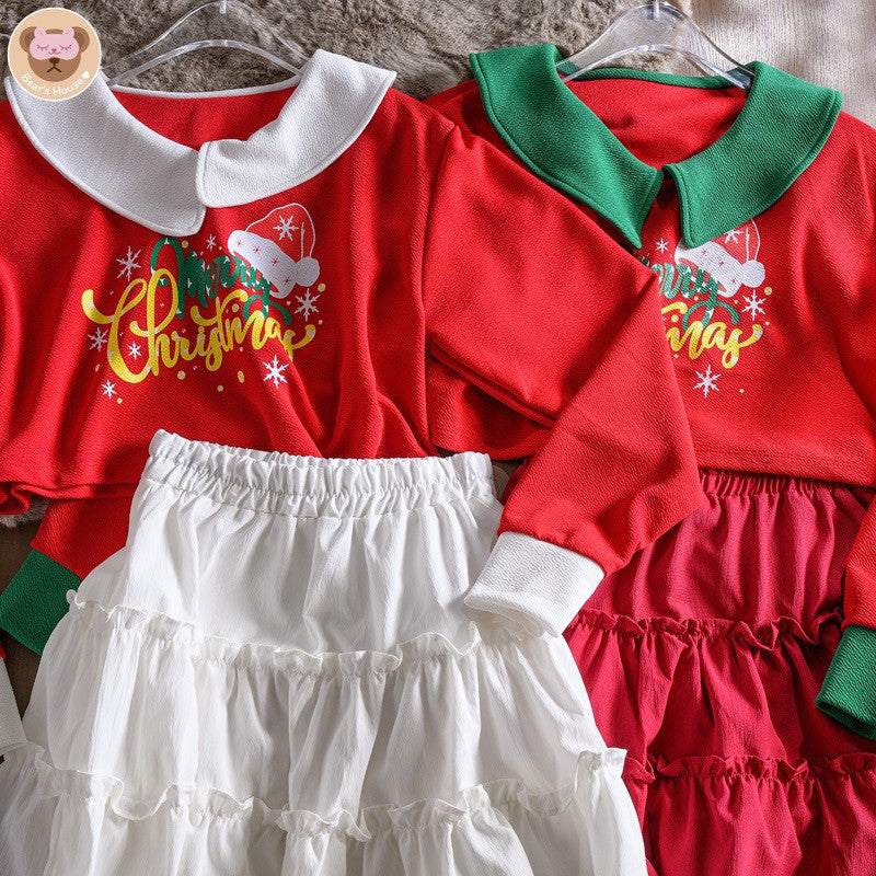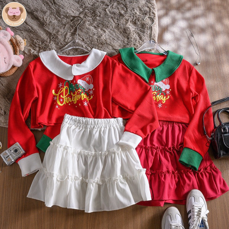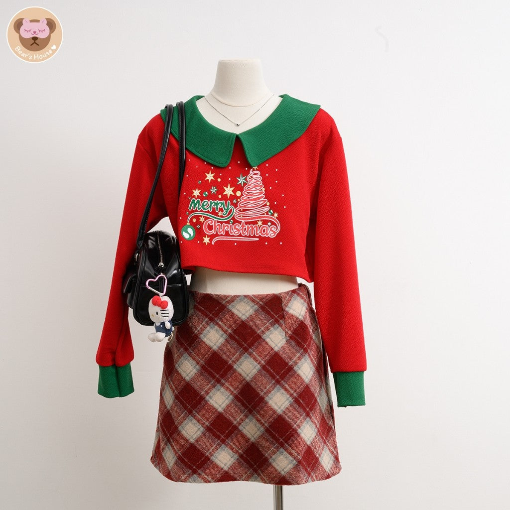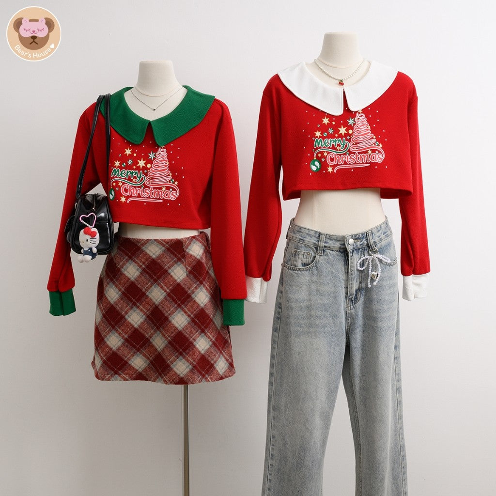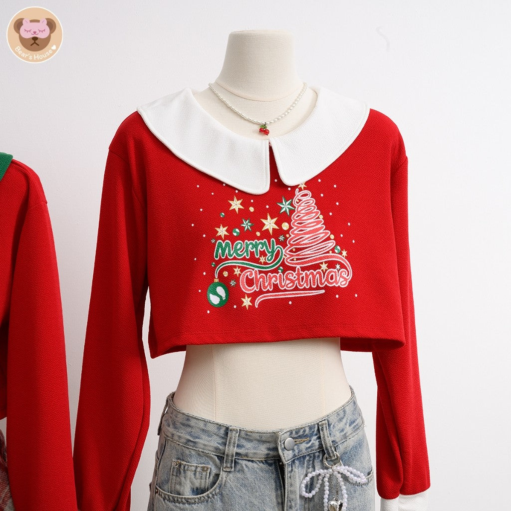 Merry Christmas Crop เสื้อครอปเเขนยาว คอบัว สกรีนลาย ผ้าวูลเวฟ