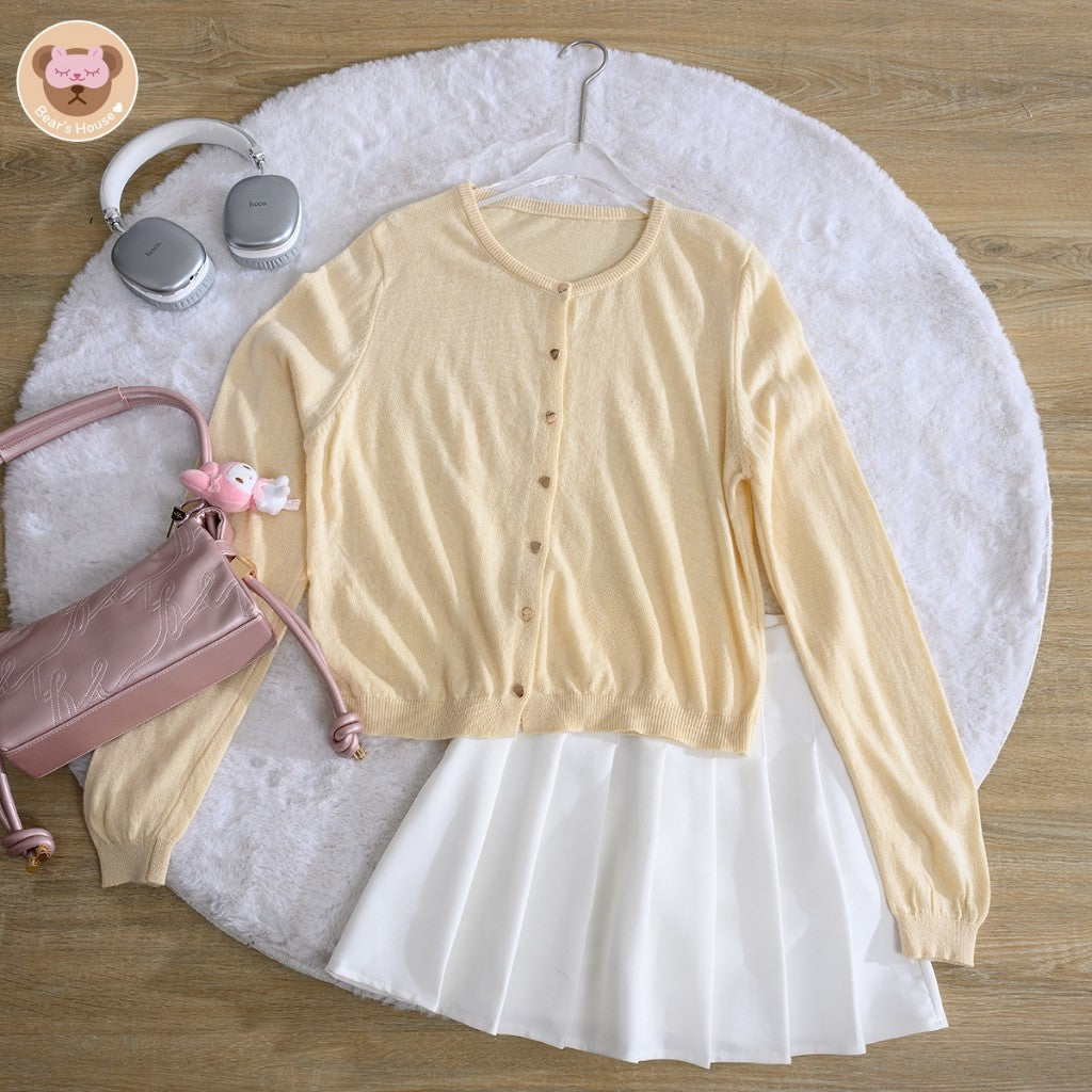 Mini Heart Cadigan เสื้อคลุมไหมพรมเเขนยาว ดีเทลกระดุมหัวใจ