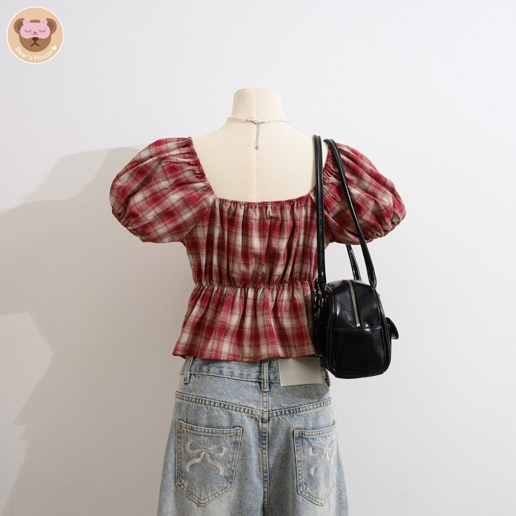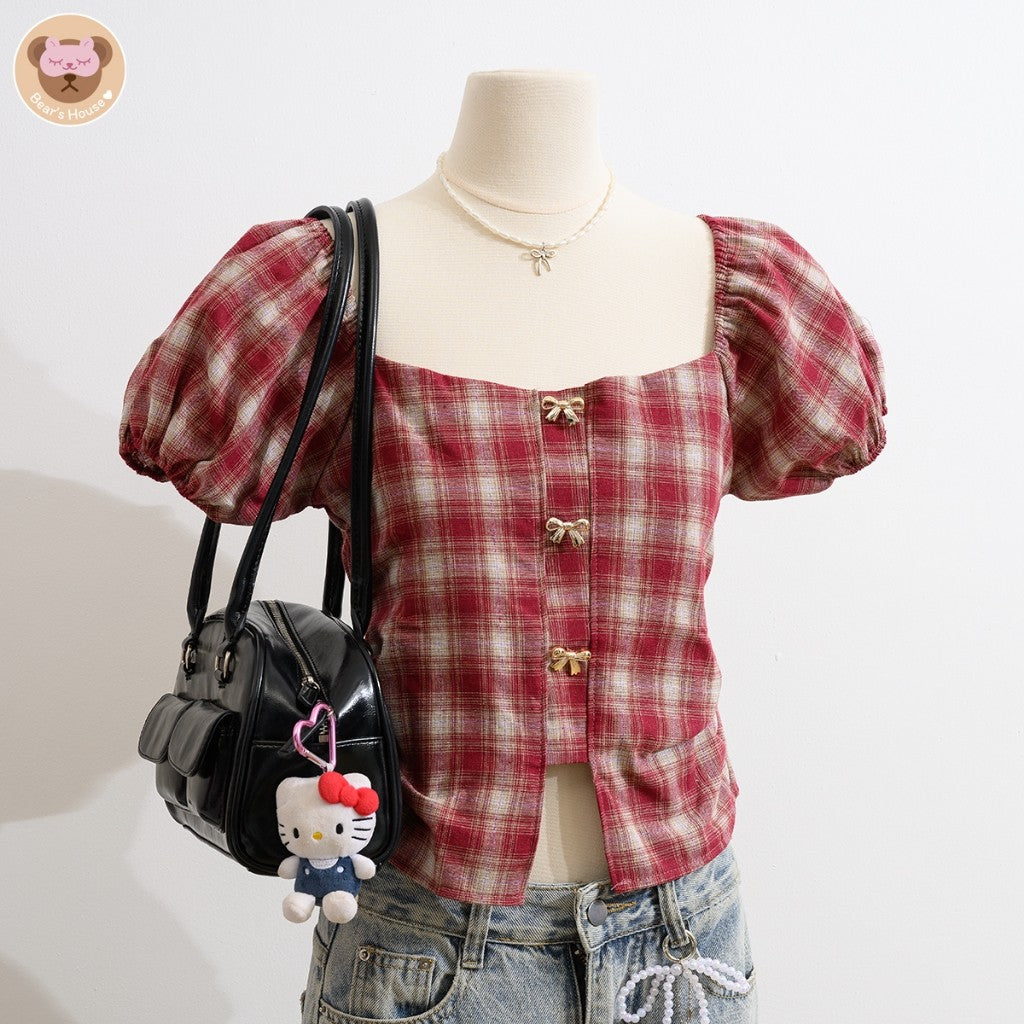 Mony Crop แขนตุ๊กตาแต่งอะไหล่โบว์สีทอง น่ารักมากๆ แต่งดีเทลเว้าตรงกลางเสื้อ จับจีบข้างๆตัวให้ดูมีอะไร หลังดึงยาง หน้าอกซับสองชั้น