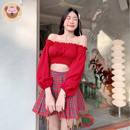 Holly Skirt กระโปรงพลีทสั้นลายสก็อตสีเเดง🎄🎅
