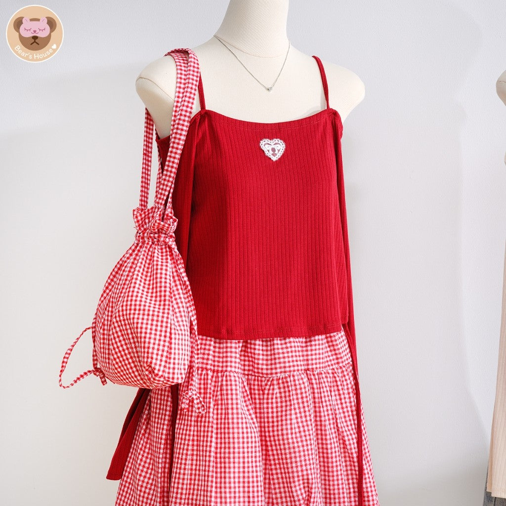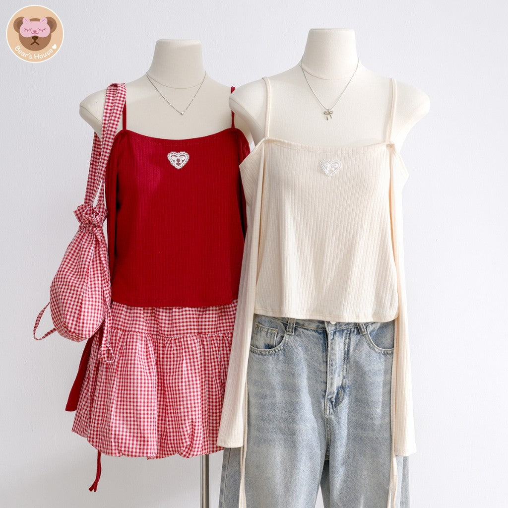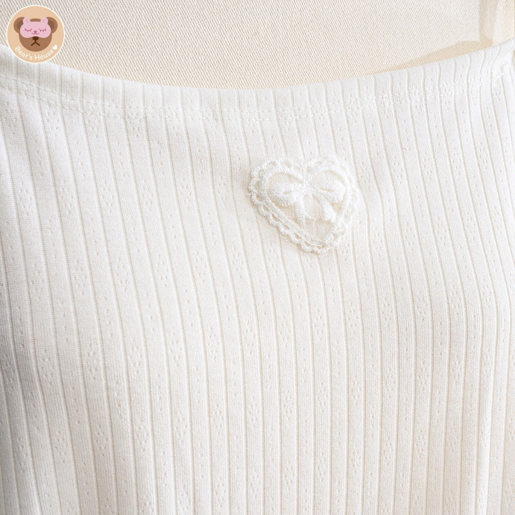 น้อง Meeny Crop เสื้อปาดไหล่สายเดี่ยว ผ้าร่อง เเต่งอกหัวใจ