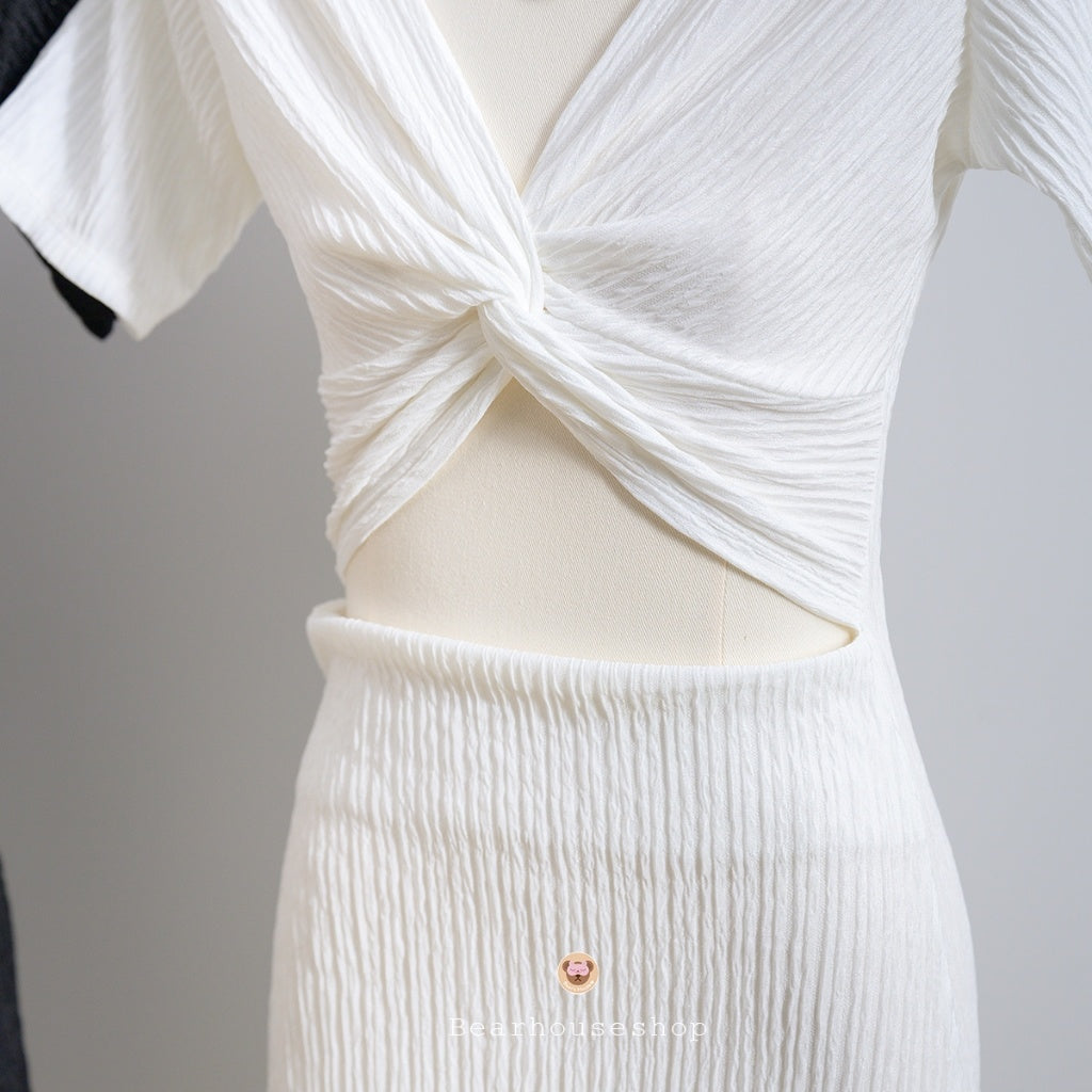 Add a playful twist to your wardrobe with the Arina Minidress! This must-have mini dress features a unique waist slit and a girly twisted bust area. Made from comfortable fabric, this dress is perfect for any occasion.