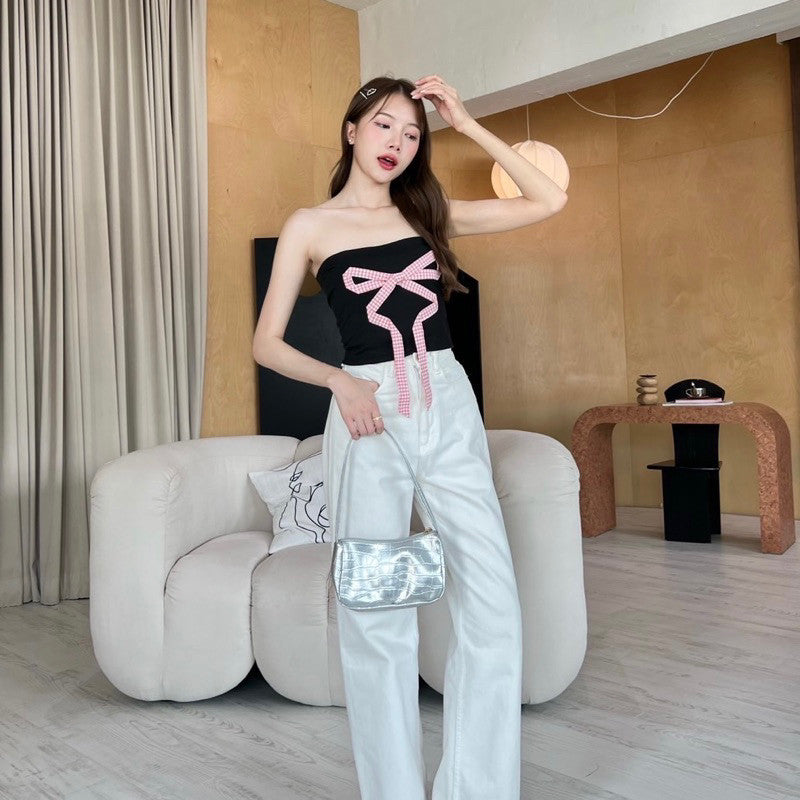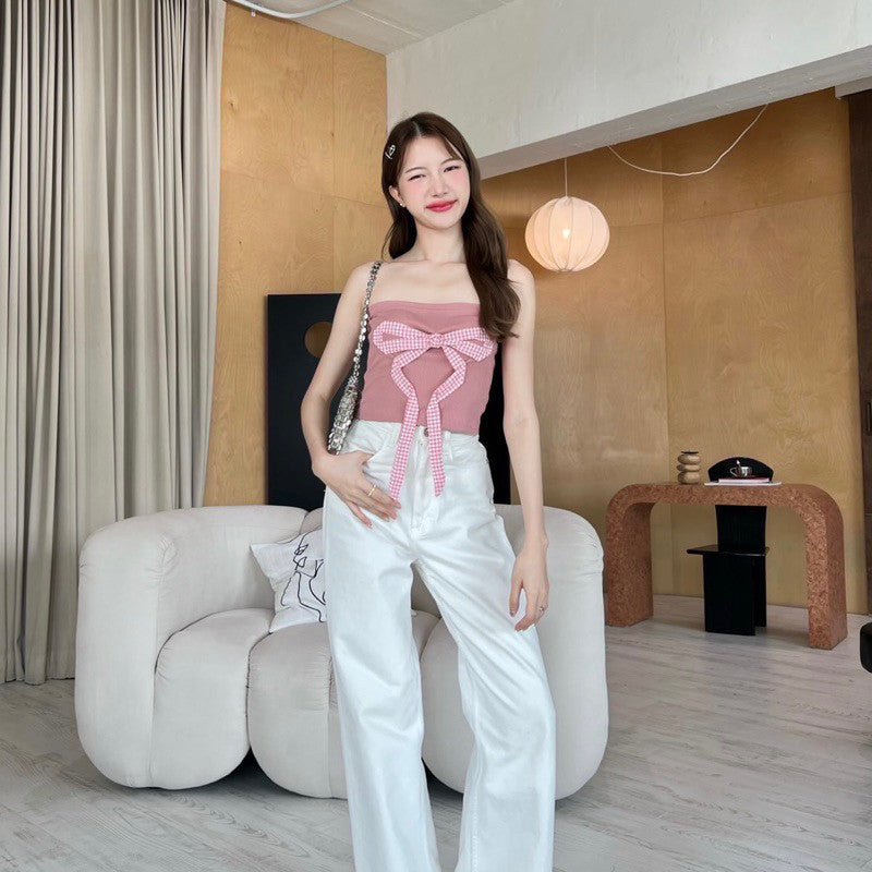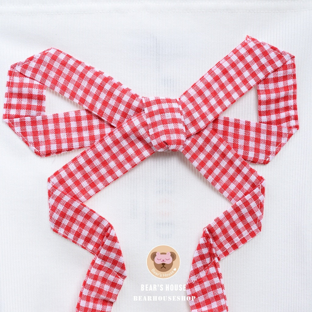 Get ready to join the Berry Gang with this cute and playful crop top! Made with stretch fabric and a sewn bow. Available in 4 colours, pair it with anything for an adorable look. 🎀