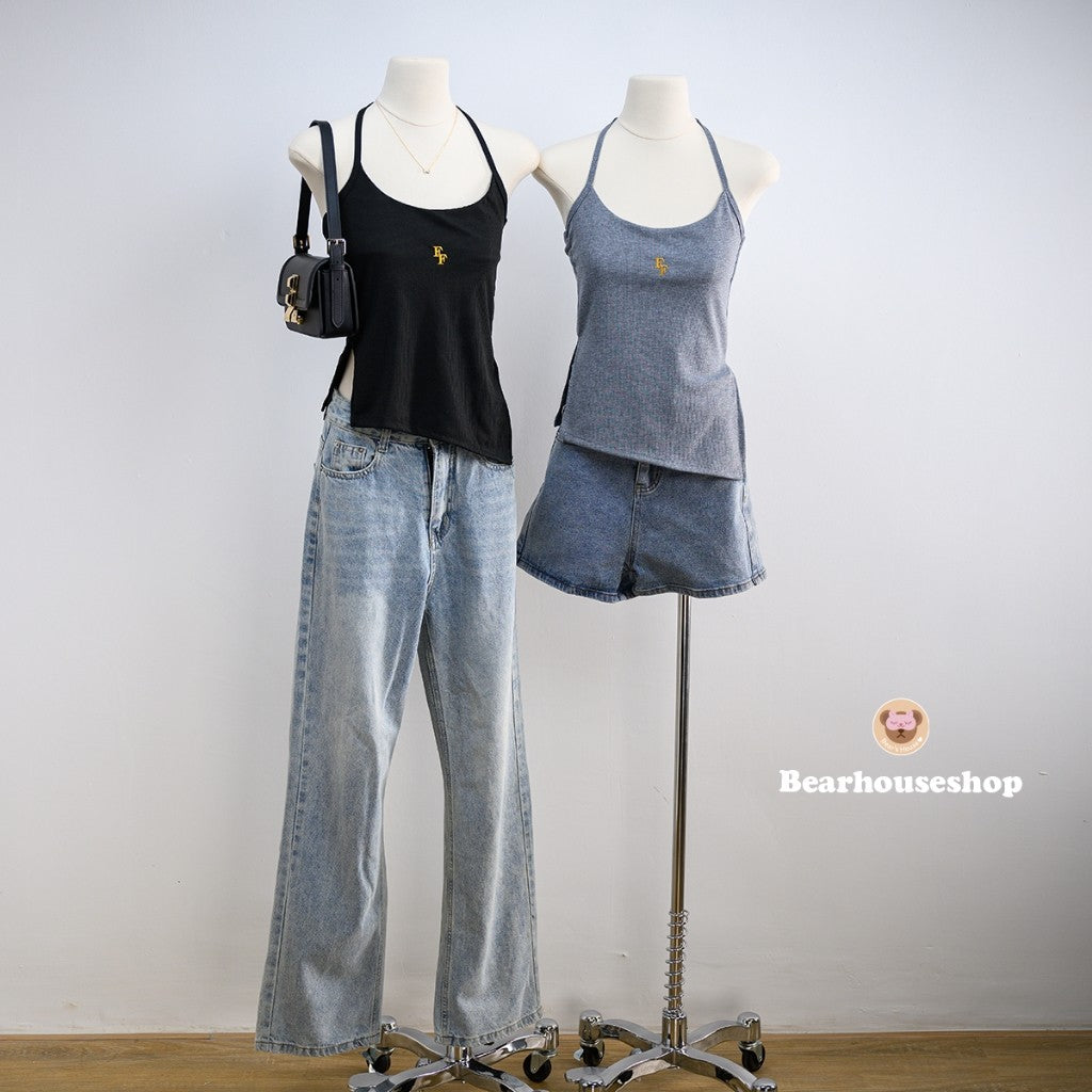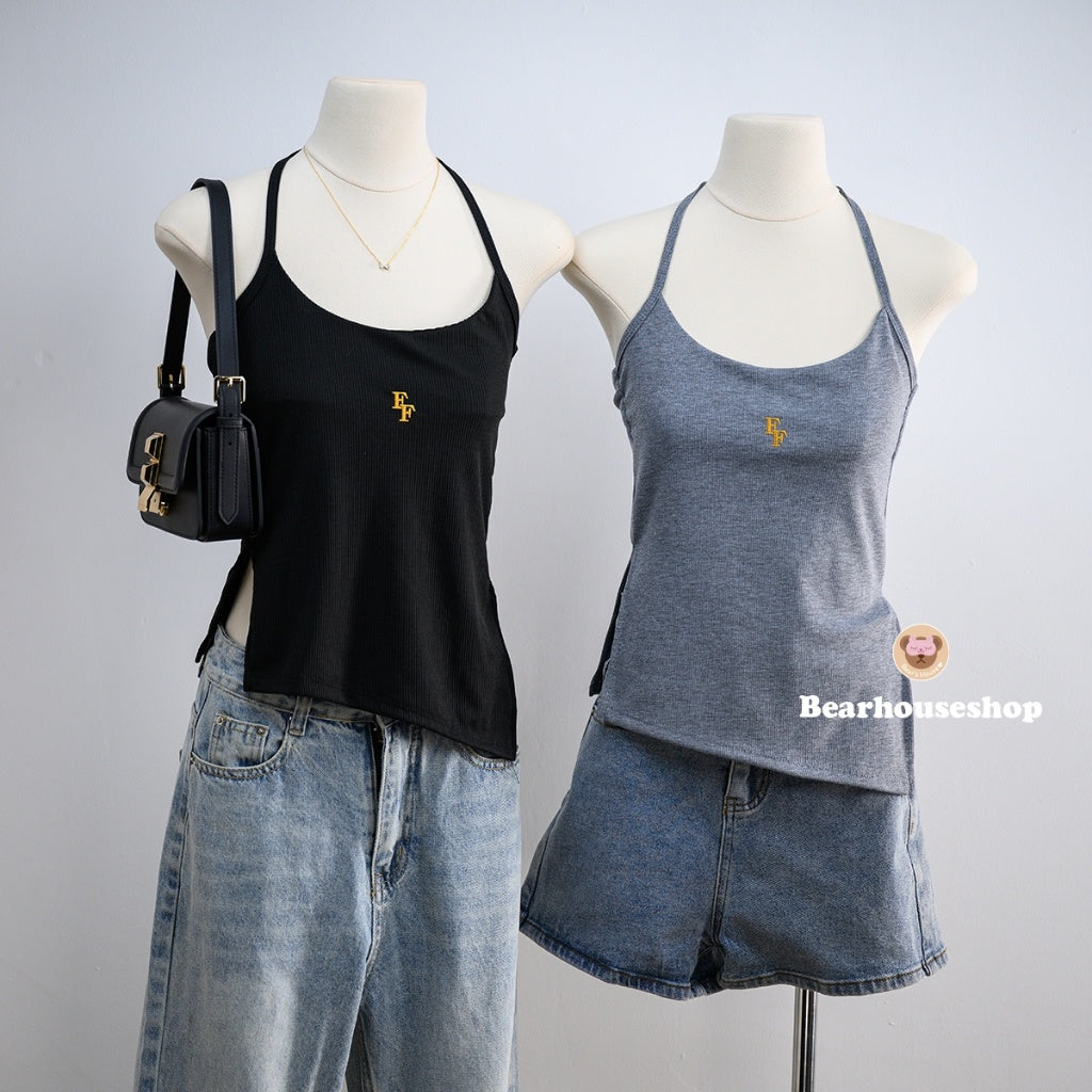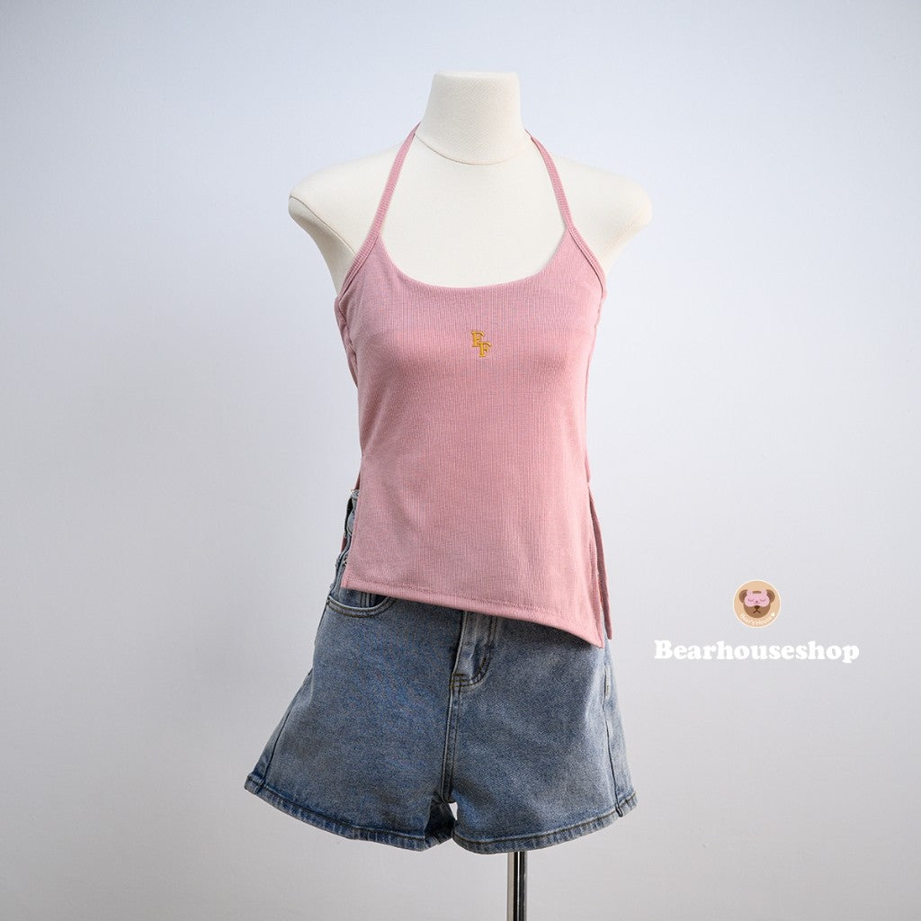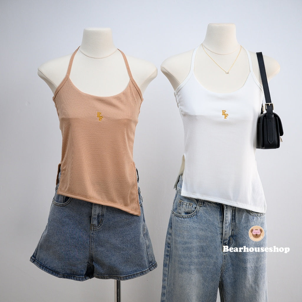 Effortlessly cute and strong, the Bina Top features a letter embroidery design and ribbed fabric that stretches to perfection. The halter neck style, side slit, and slanted front add an extra touch of chicness🔥, while the double-layer chest fabric offers extra support. Perfect for achieving a beautiful shirt style, this top is definitely a perfect ten.