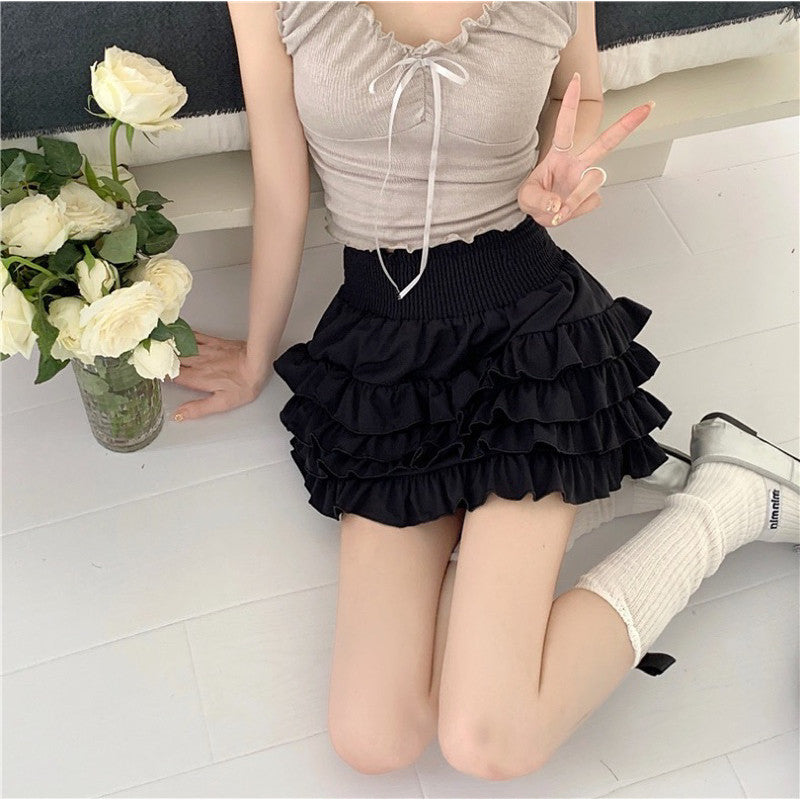 Be fearless and fashionable in the Britney Skirt! This short skirt boasts 4 playful layers of ruffles and a lined interior. With a thin smocked waist, it pairs perfectly with any crop top. Perfect for photos, content creation, or a trip to the cafe.