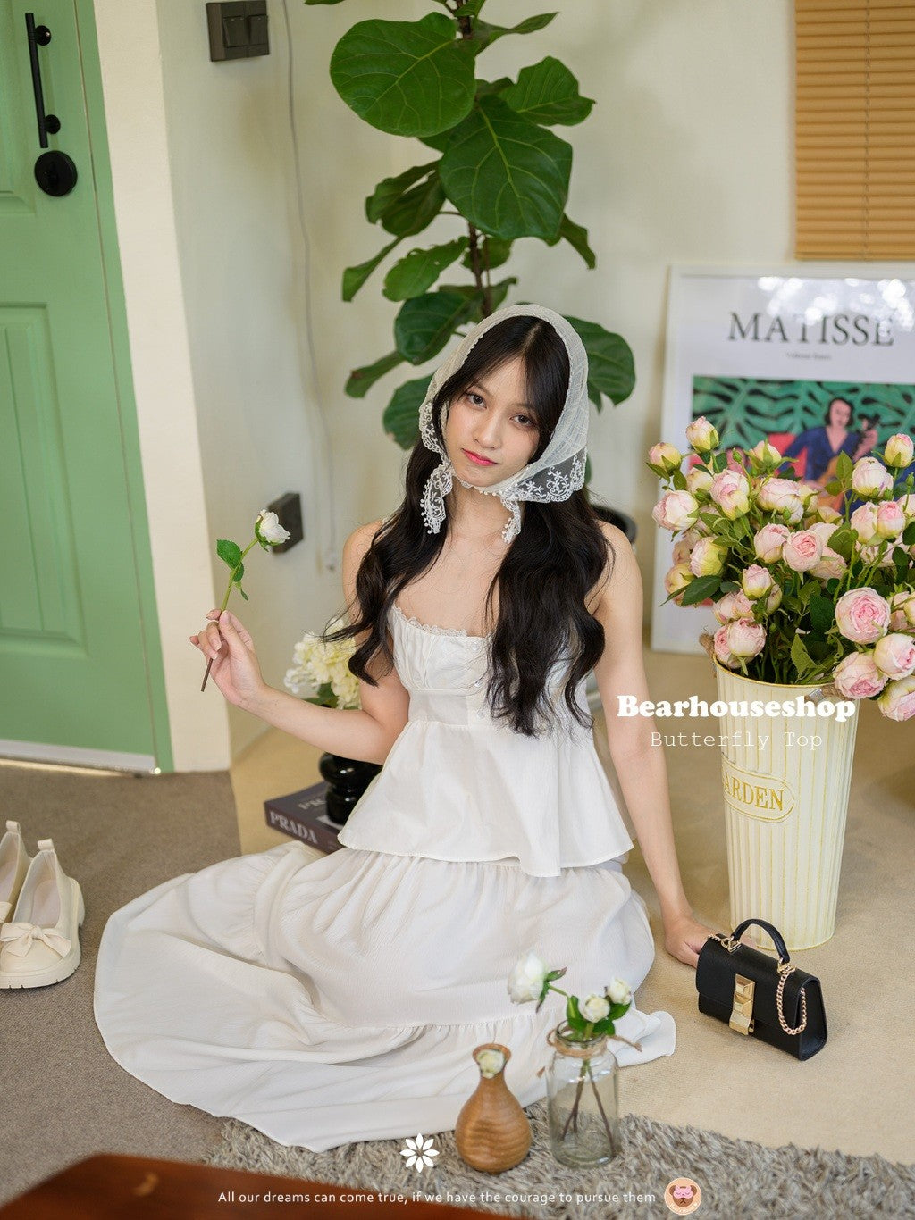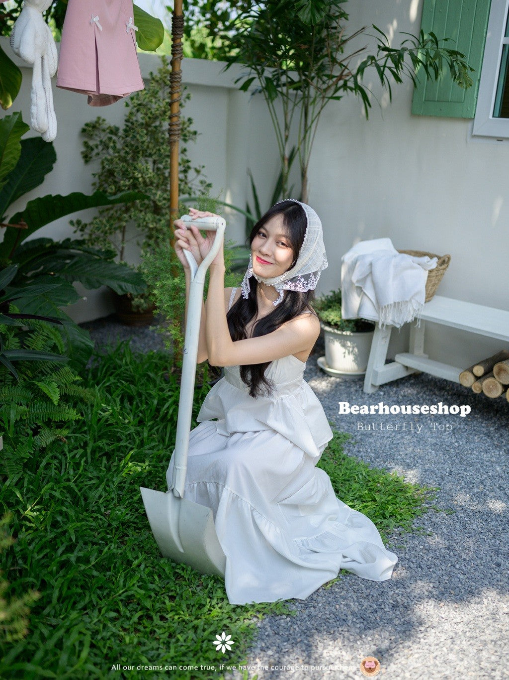 This cotton tank top features a lace border and a comfortable, non-heated fabric. It also includes smocked back and front buttons.