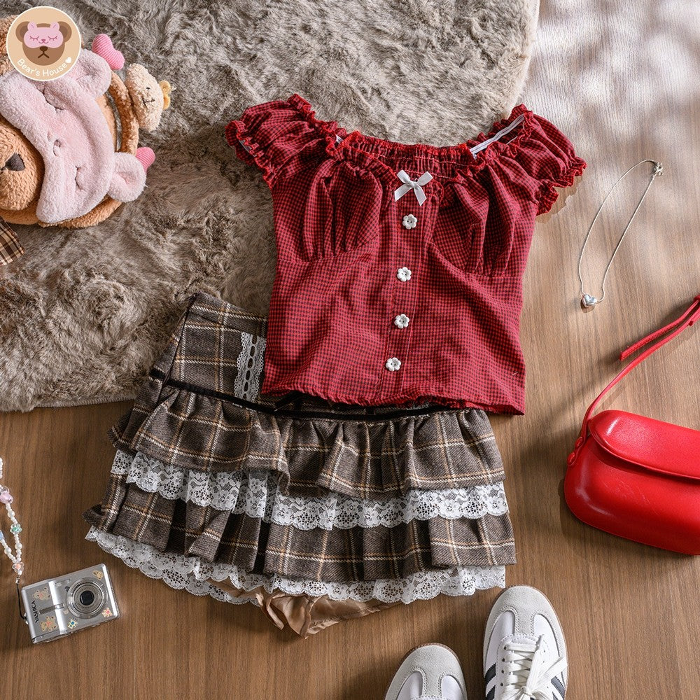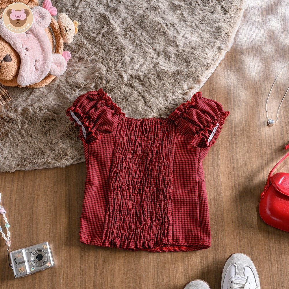 Cara Scotte Crop เสื้อครอป ผ้าลายสก็อต เเต่งริบบิ้น