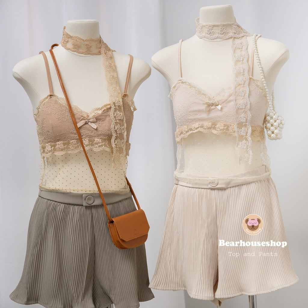 Introducing the Charlotte Lace Top, the perfect addition to your wardrobe. This top features a delicate lace design with a charming ribbon detail on the chest. It also has an adjustable strap for a comfortable fit. Perfect for photoshoots or a casual day at the cafe. Get ready to turn heads!