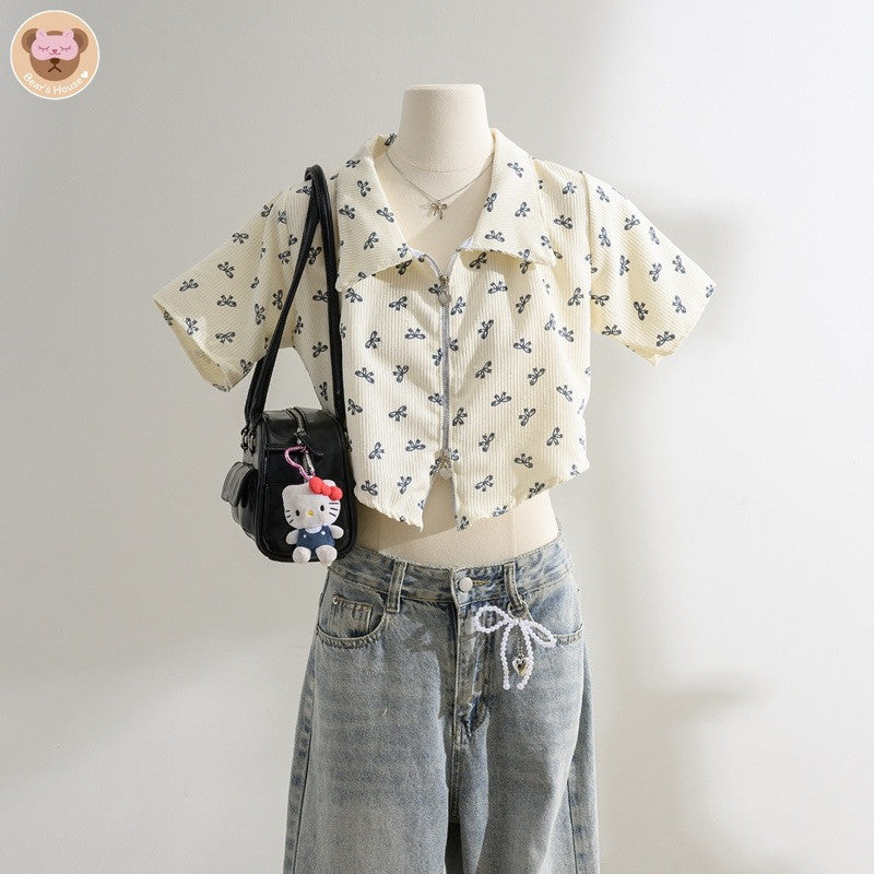 Corrug Zipper Shirt ซิปคอปกเเต่งซิปหัวใจ❤️