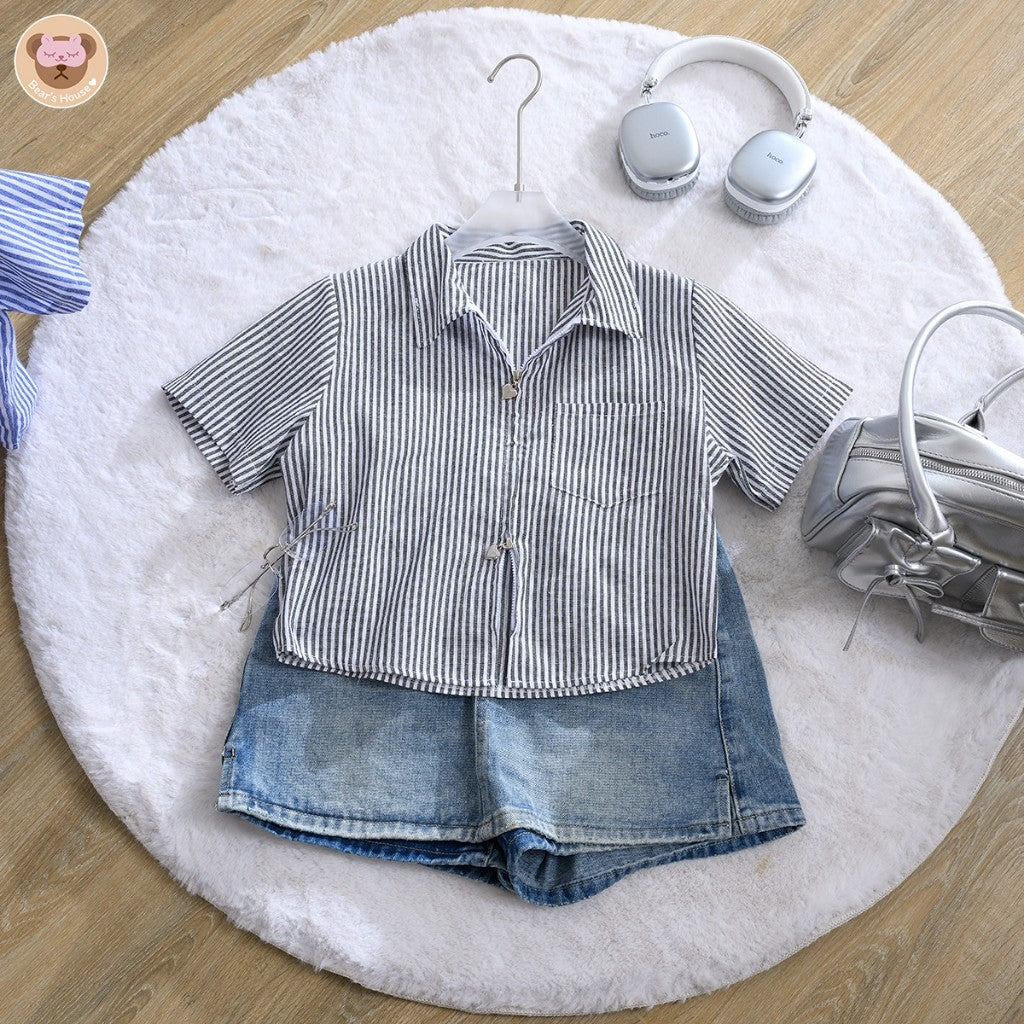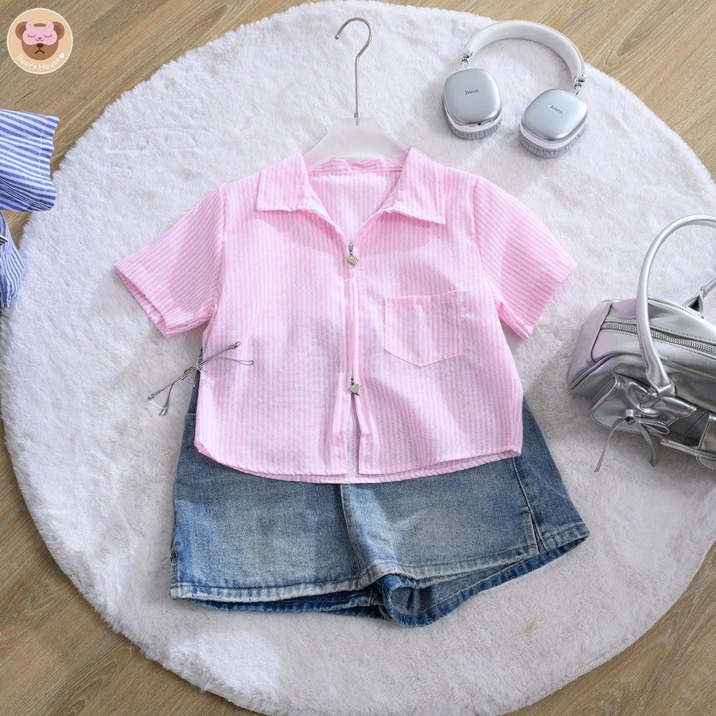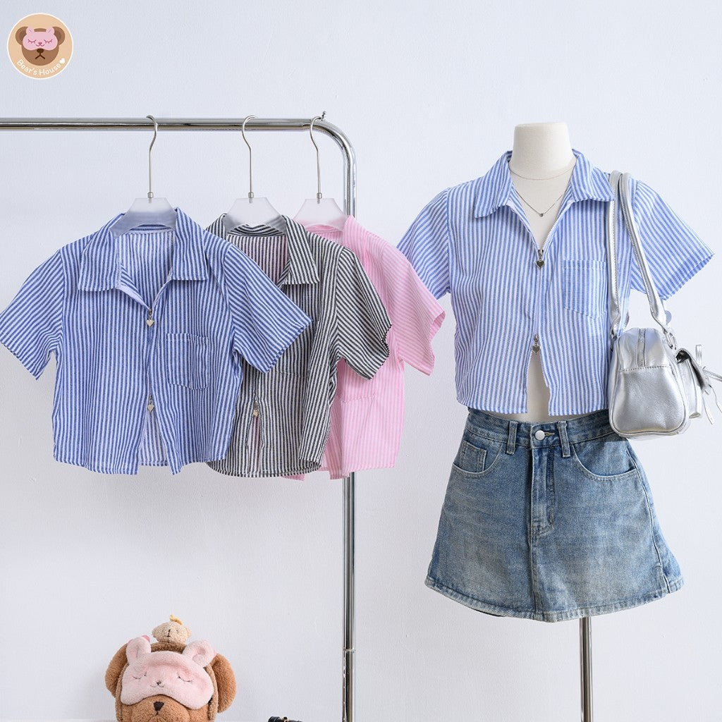 Dino Shirt เสื้อเชิ้ตคอปกซิปหัวใจ รูดได้ทั้งบนและล่างเลยน๊า ดีเทลน่ารัก มีกระเป๋าด้านหน้า