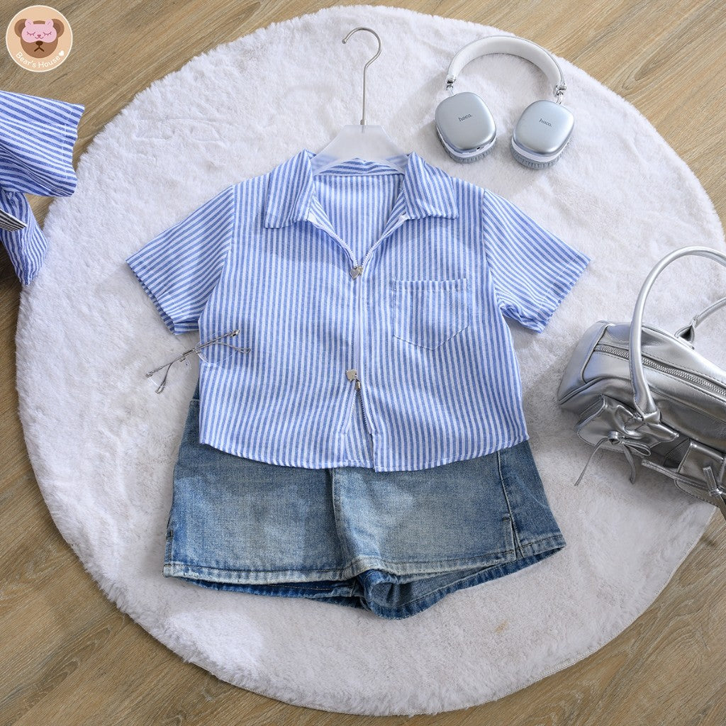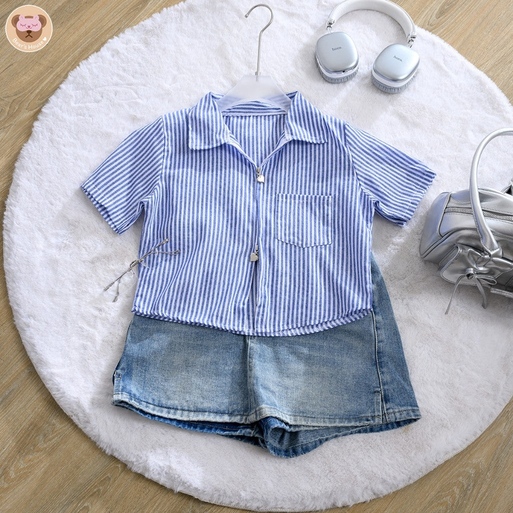 Dino Shirt เสื้อเชิ้ตคอปกซิปหัวใจ รูดได้ทั้งบนและล่างเลยน๊า ดีเทลน่ารัก