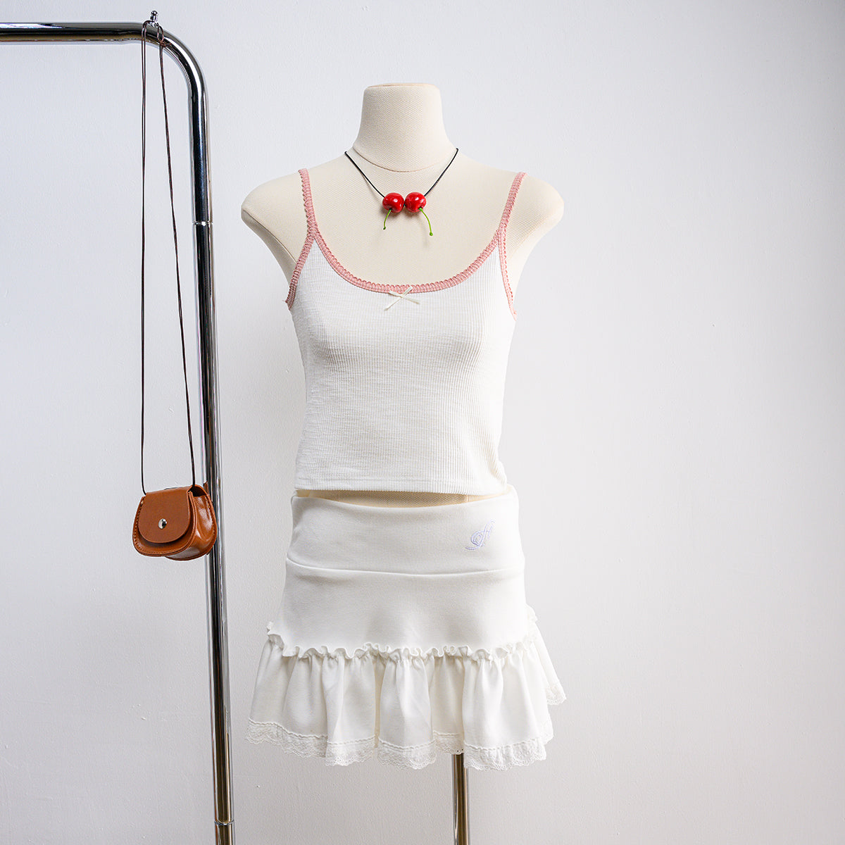 Step up your skirt game with the Gangnam Skirt! This low-waist skirt features an embroidered logo and lace trim for a stylish touch. With a soft fabric and comfortable lining, you'll never want to take it off. Don't be afraid to stand out in this cute and unique skirt!