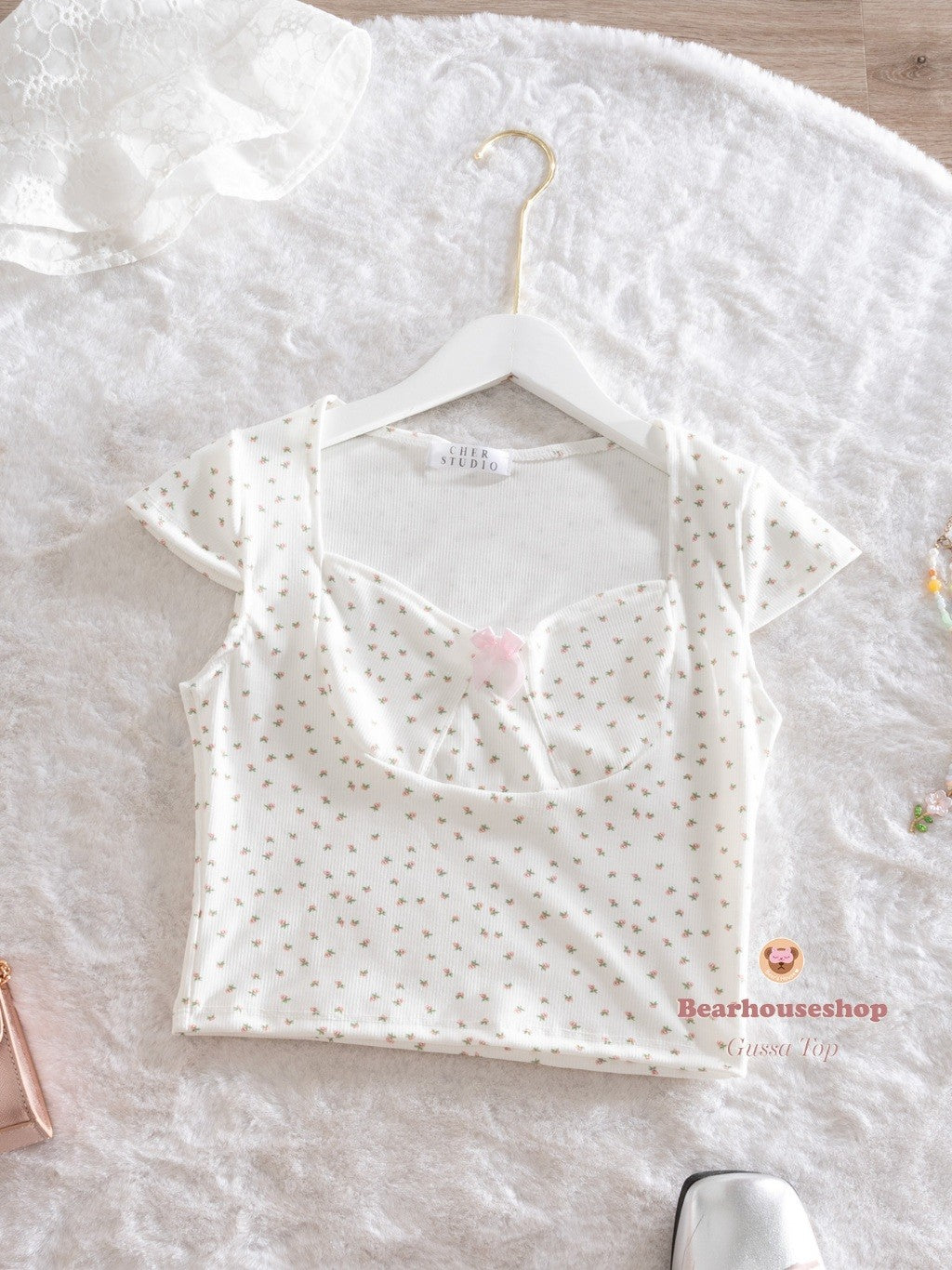 Introducing the Gussa Top, a stylish short sleeve shirt with a gorgeous flower pattern and ribbon embellishment. Made from soft stretchy fabric, this top is not only comfortable to wear, but also perfect for the weather in Thailand. It's easy to match and will make your little one look absolutely adorable!