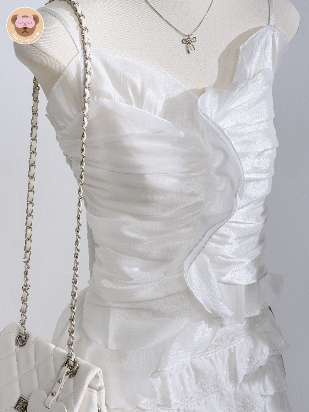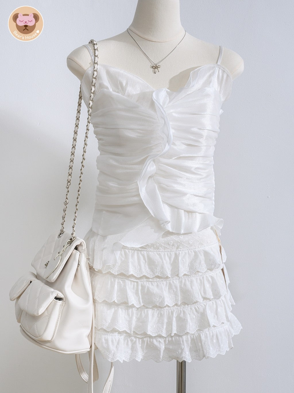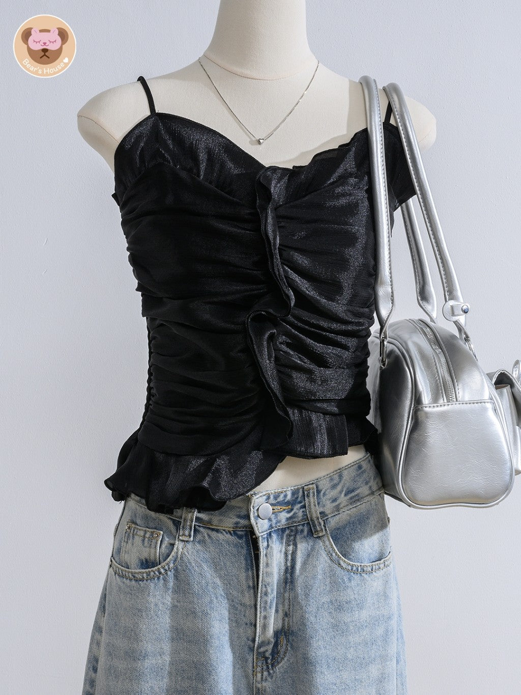 Hachi Cami สายเดี่ยวผ้าเเก้ว เเต่งจีบ งานนำเข้า