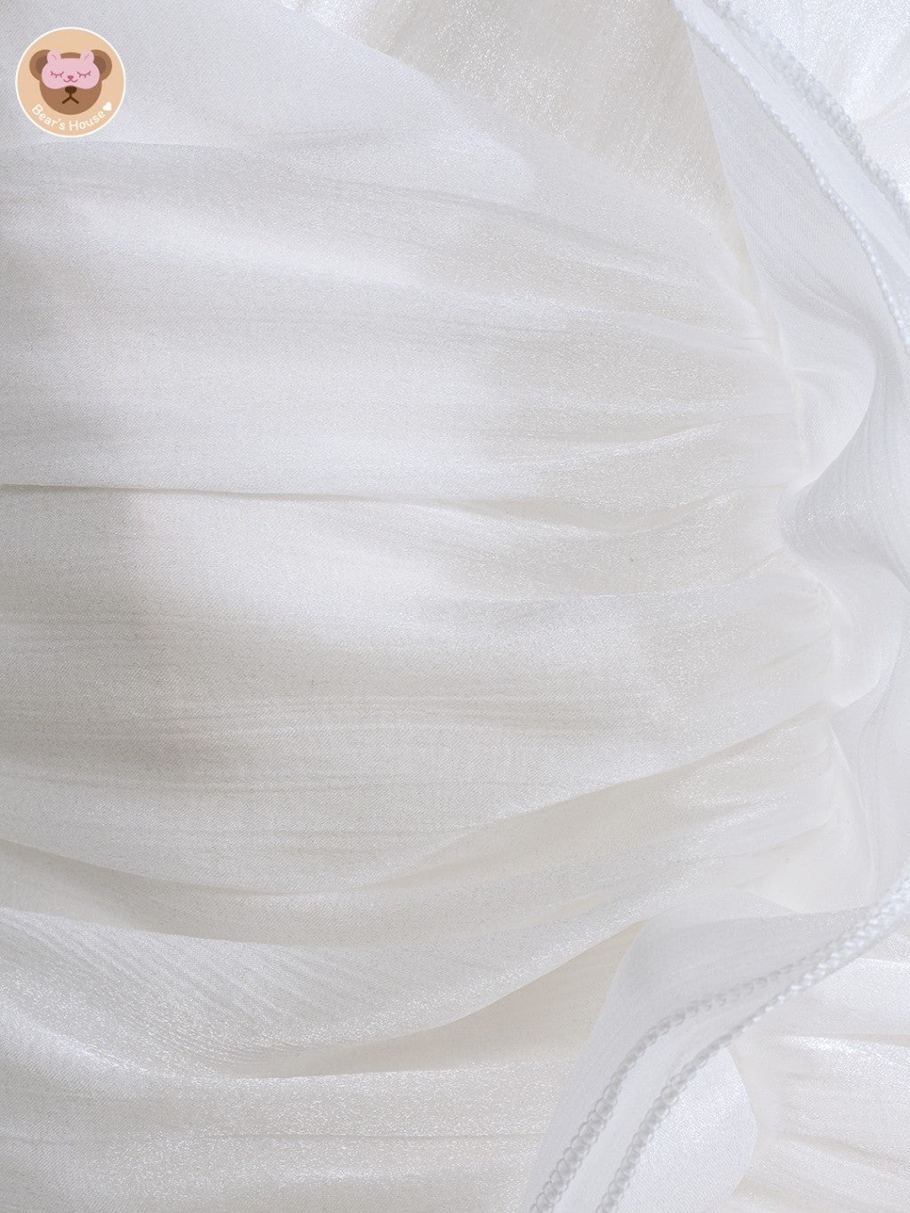 Hachi Cami สายเดี่ยวผ้าเเก้ว เเต่งจีบ งานนำเข้า เนื้อผ้า ใส่สบาย ดีเทลด้านหลังสม็อค