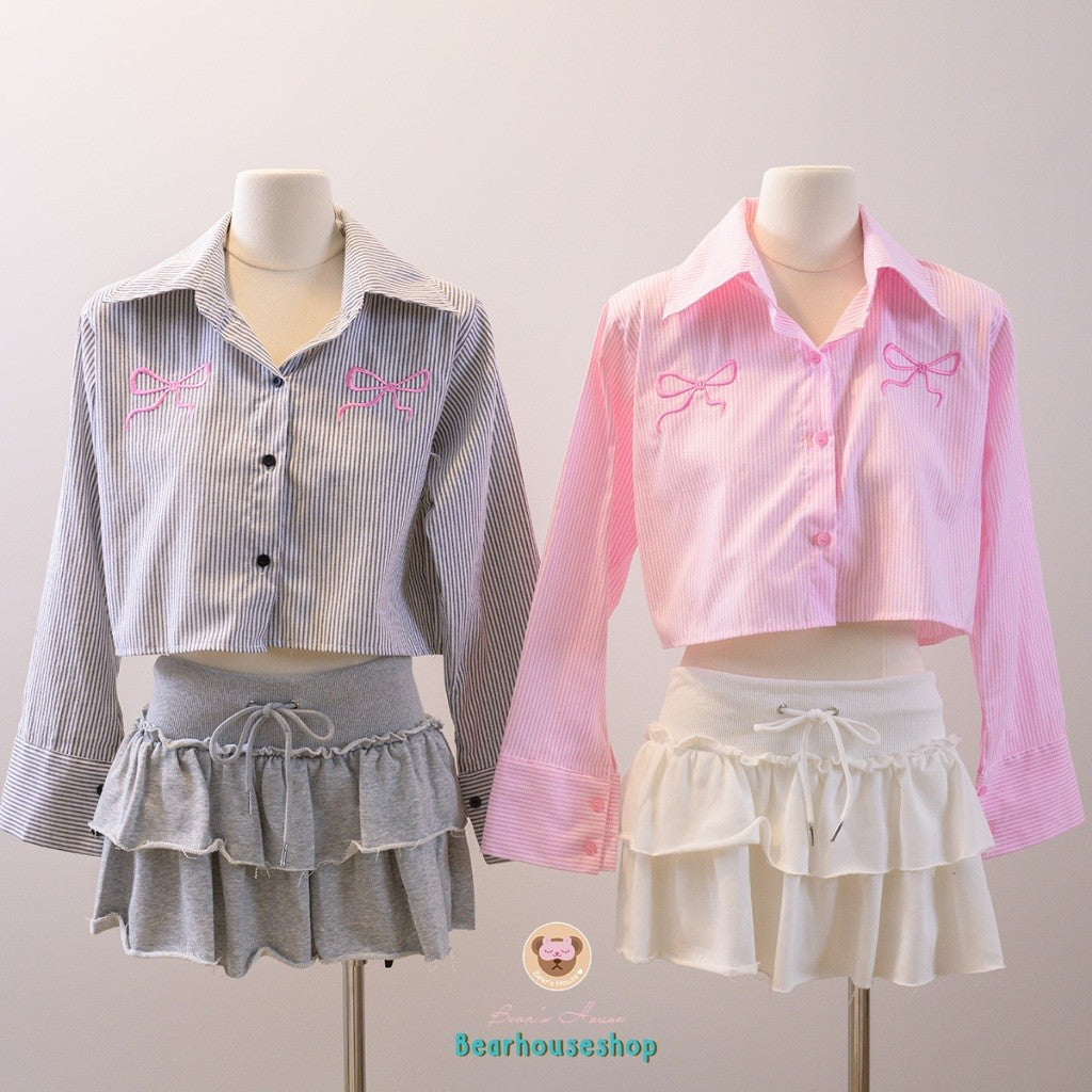 Add a touch of cuteness to your wardrobe with the Judy Bow Crop shirt. Featuring an embroidered pink bow, dropped shoulders, and an oversize style, this crop shirt is versatile enough to pair with pants or a skirt for any occasion. Made of soft cotton fabric, it's perfect for travel, work, or a casual day out. Plus, it comes with its own cabinet model for easy storage. Dress it up or dress it down, you'll want to wear the Judy Bow Crop often!