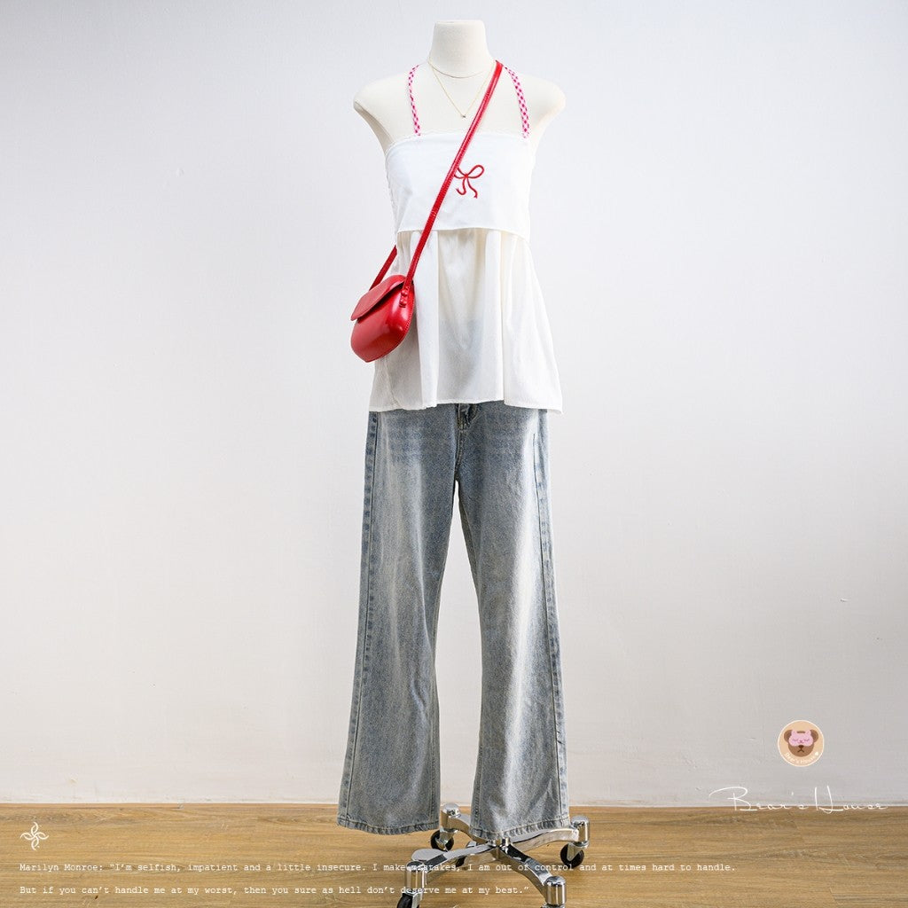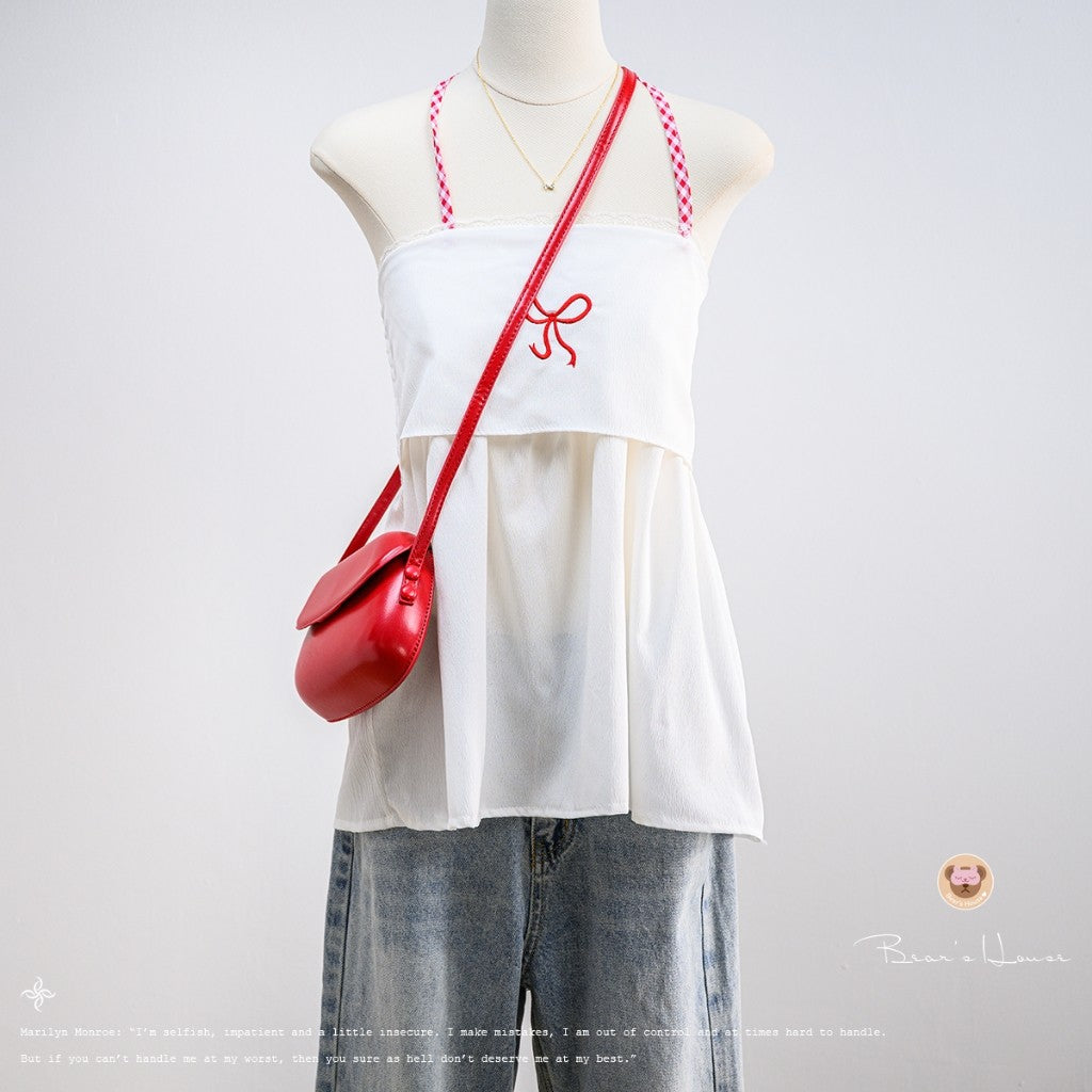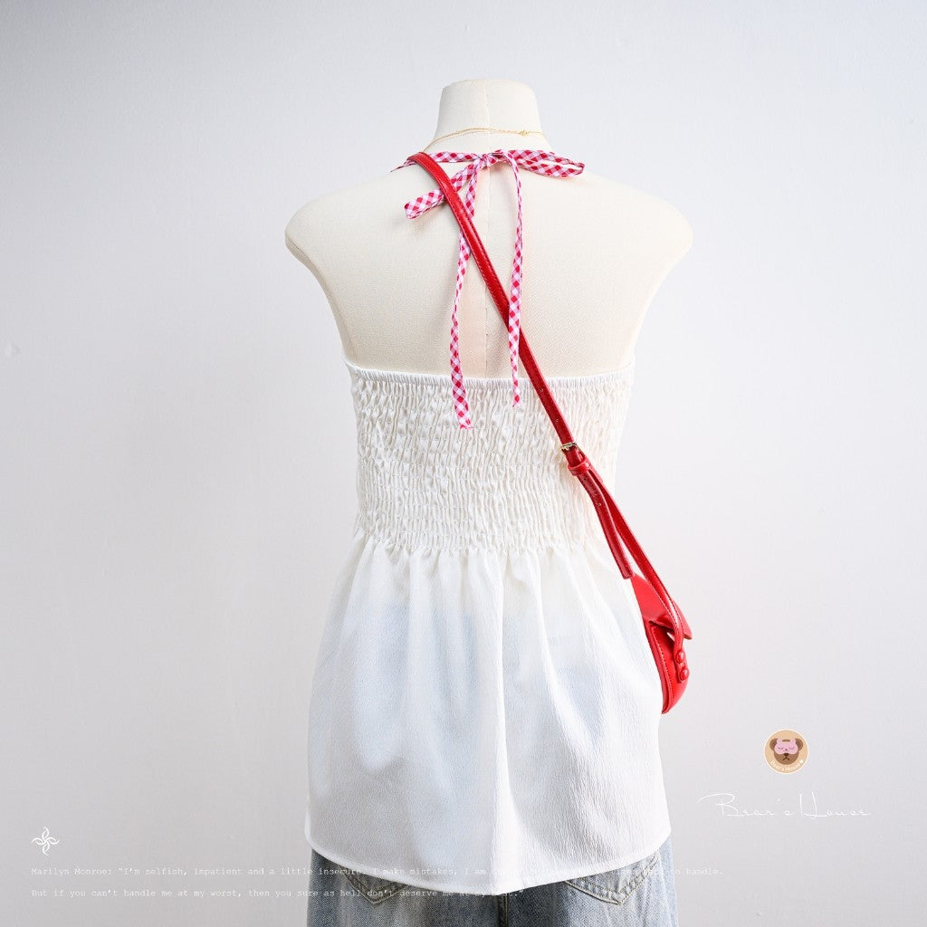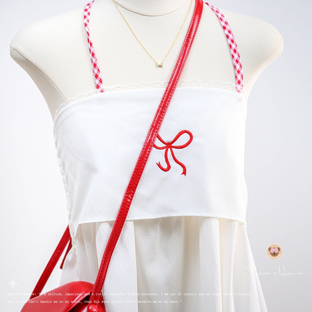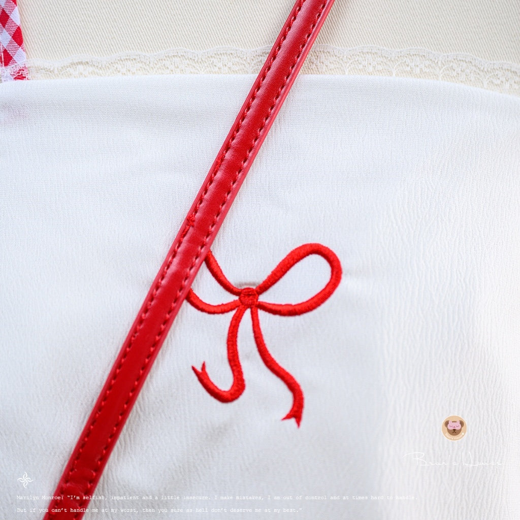 The Kim Bow Tube is a must-have for any fashionista! This strapless top features a plaid neck strap and an adorable embroidered red bow. Perfect for pairing with pants or skirts, the comfortable fabric makes it ideal for travel or creating amazing content. So cute, you'll want to wear it every day!