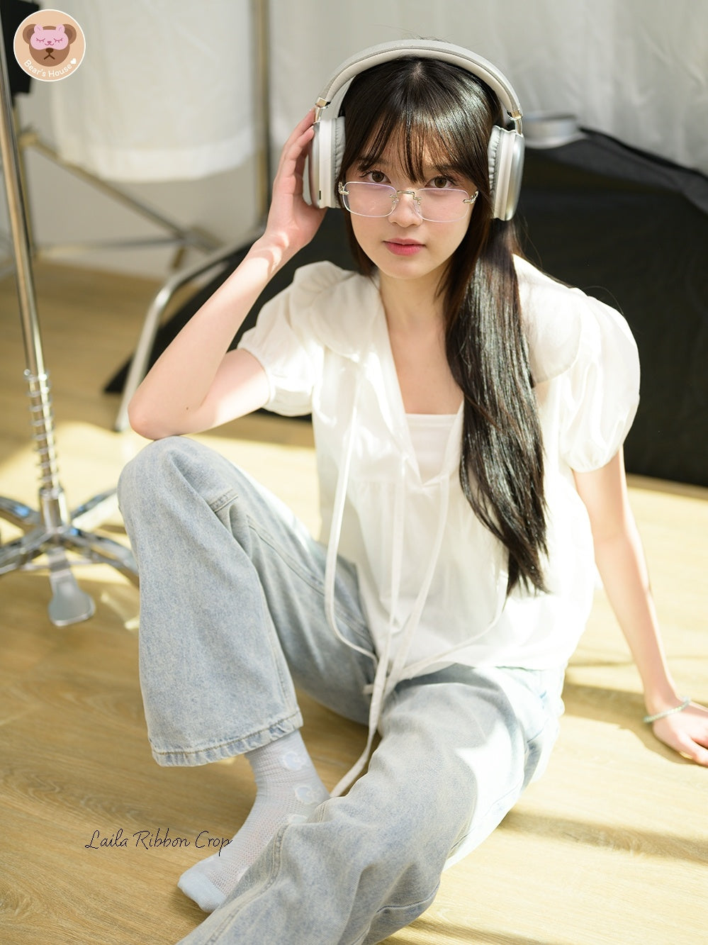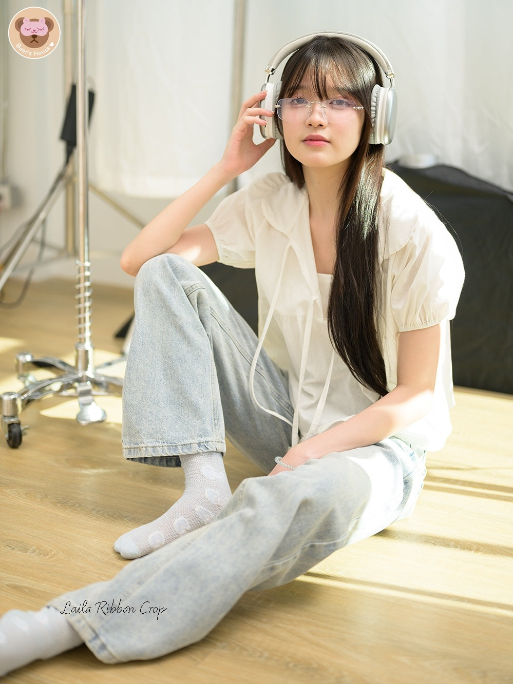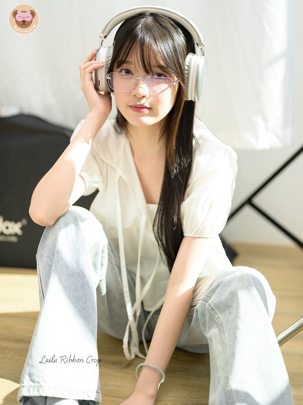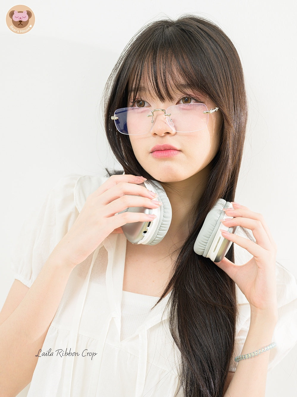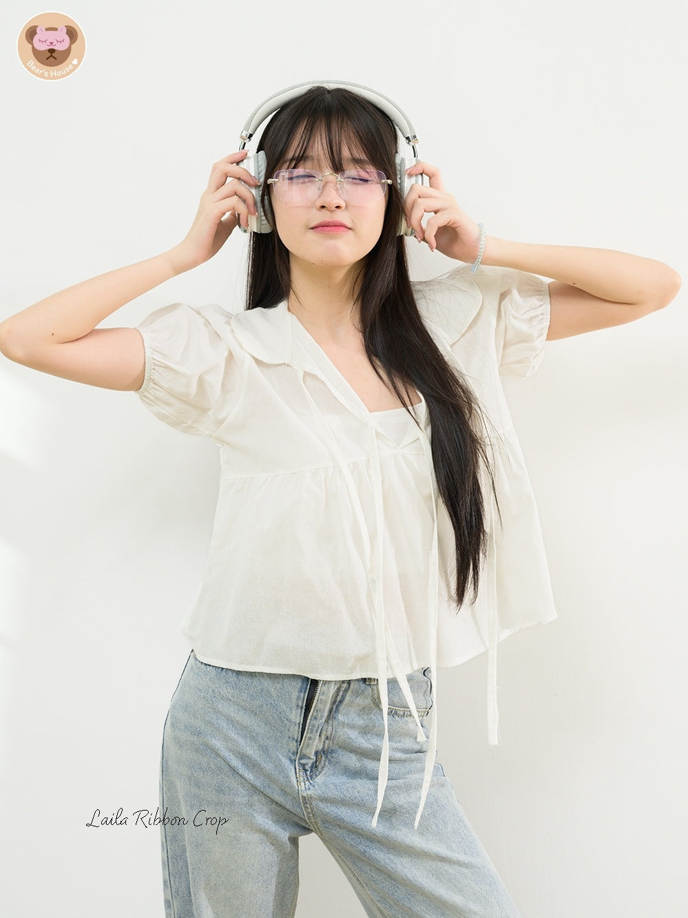 Laila Ribbon Crop, white lotus neck crop top. Adorned with a front bow and doll-like sleeves made of cotton. Comfortable and breathable, with a playful bow-tied rope detail on the chest. A little bit sexy and versatile - perfect for pairing with pants or skirts. It's sure to elevate any outfit, especially for those who aren't fans of tank tops. Featuring a single strap, it can also be tucked in for a different look.