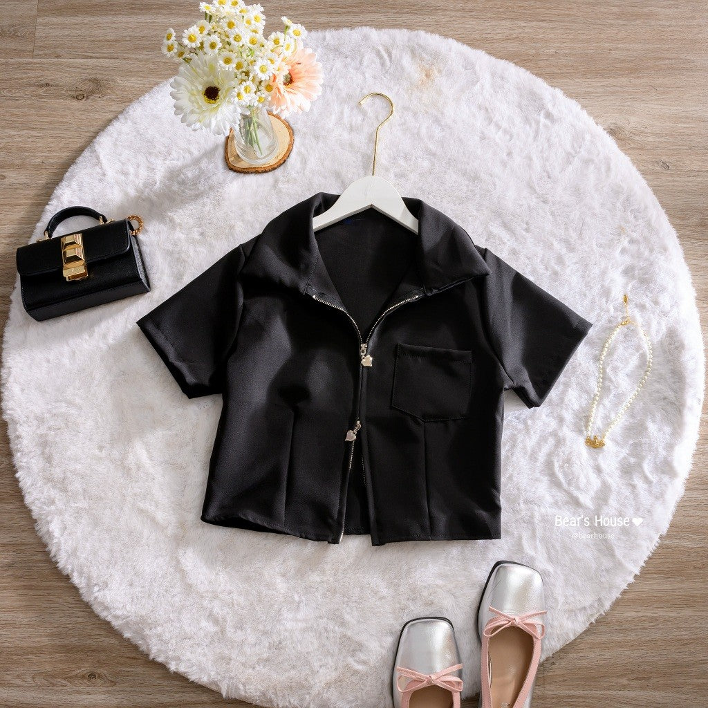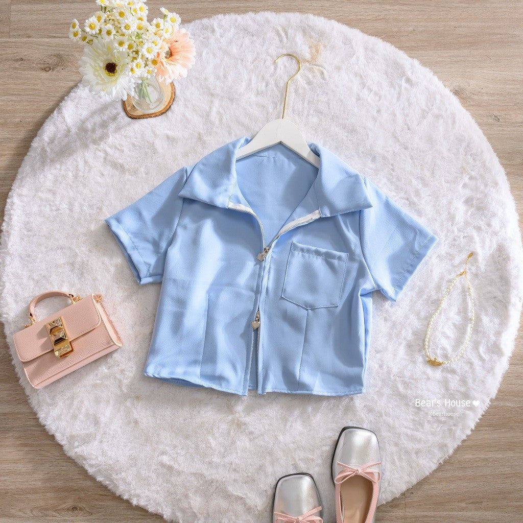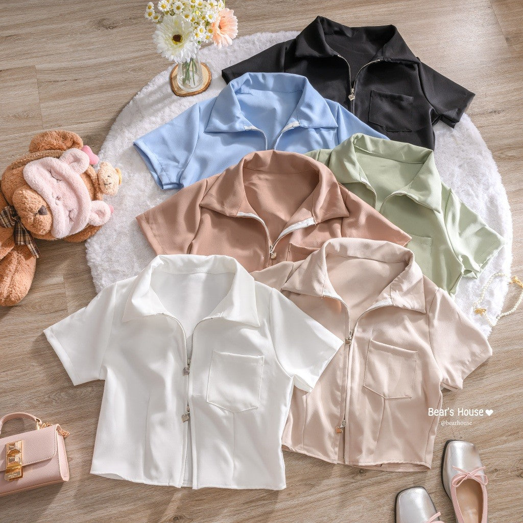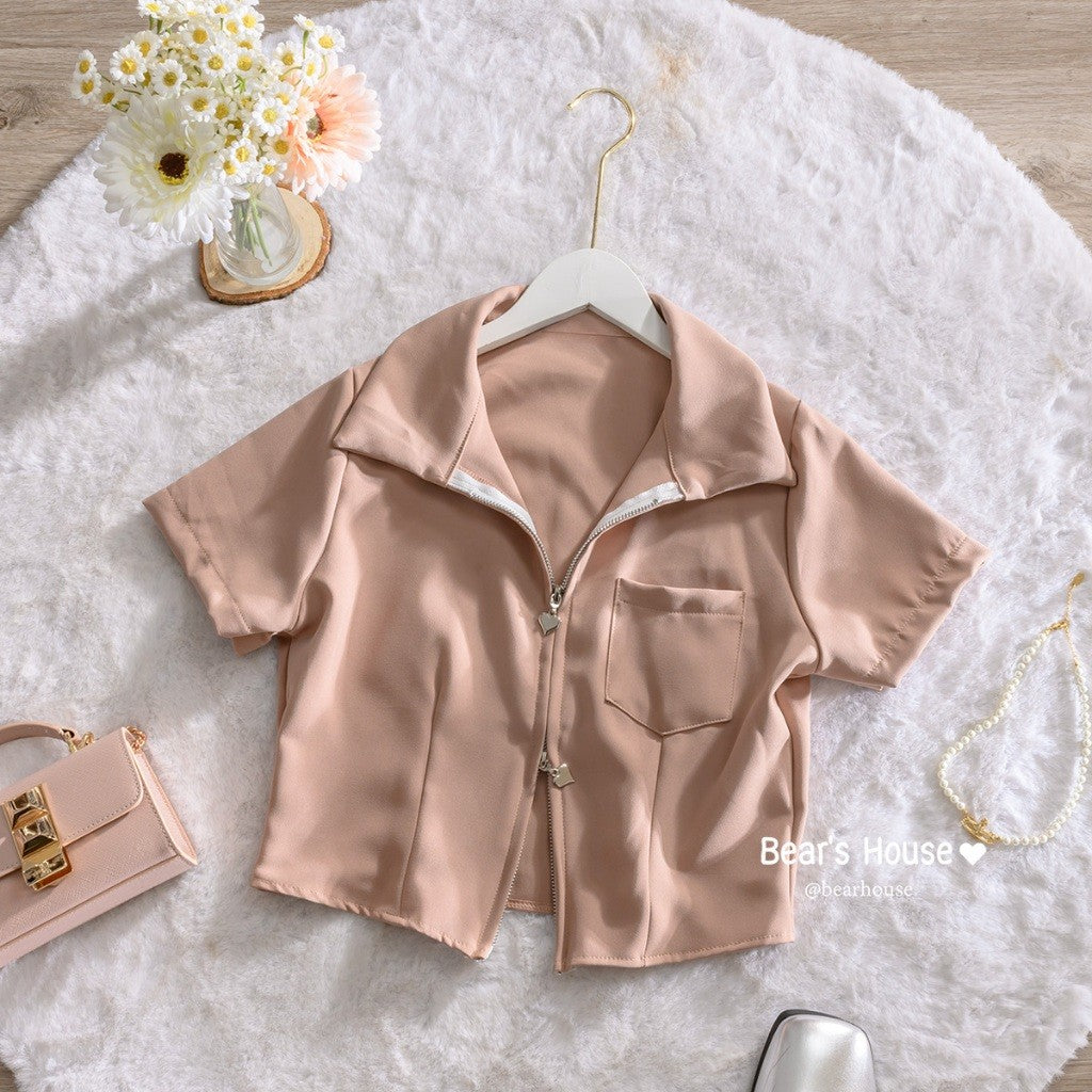 Introducing the Leslay Shirt - the ultimate in cute and trendy fashion! With a heart zipper collar, you can swipe it open or closed for a unique look. Made with high-quality Barbie fabric, it's not too thin and always looks stunning. Plus, it even features a pocket on the front. A must-have for any closet! ❤️