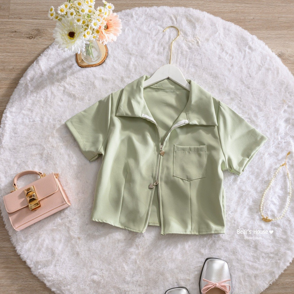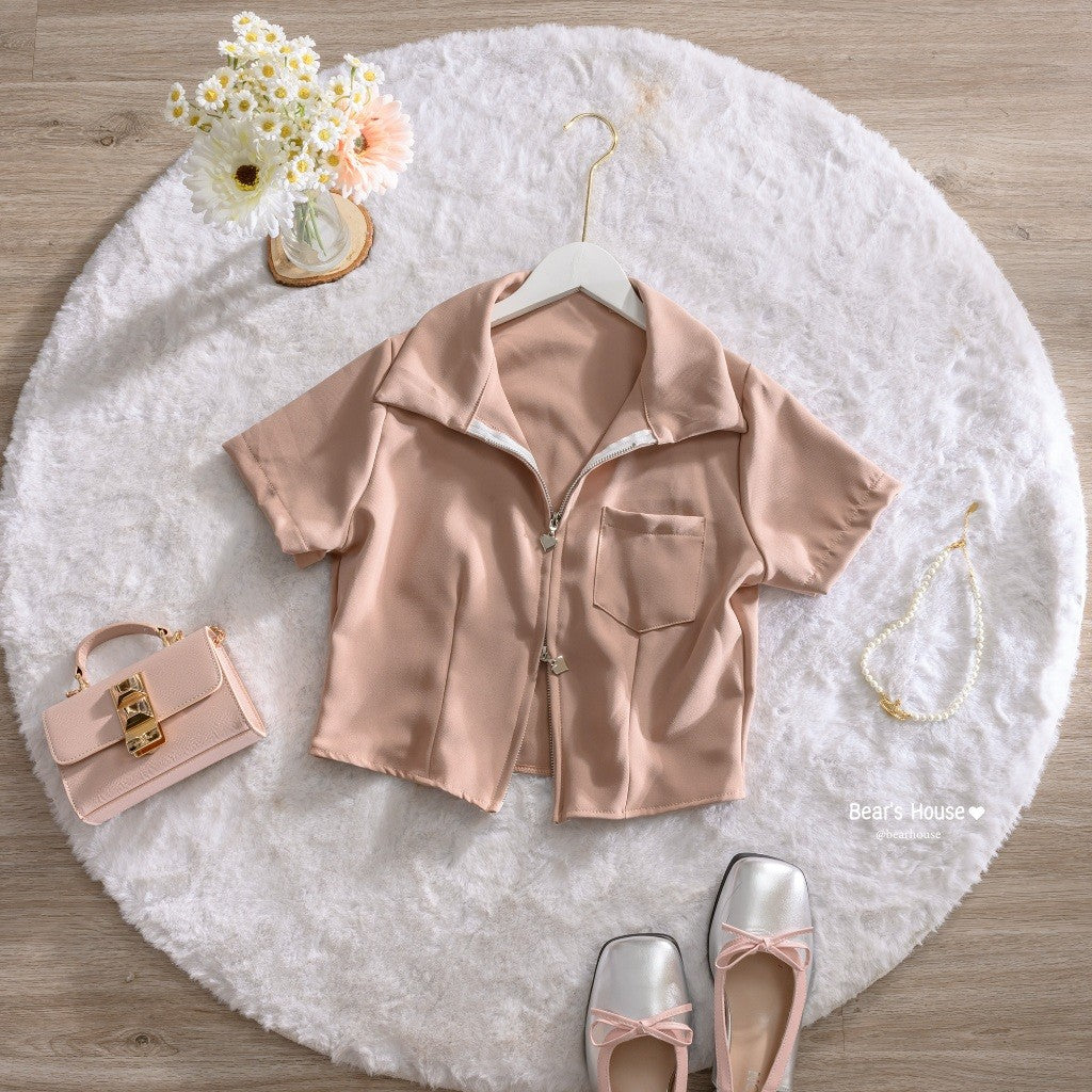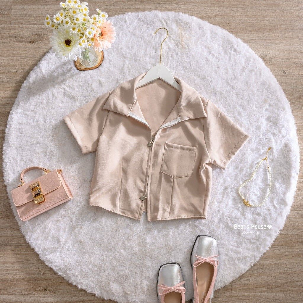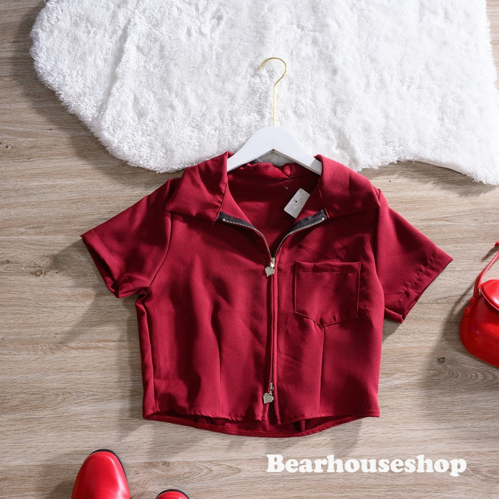 Introducing the Leslay Shirt - the ultimate in cute and trendy fashion! With a heart zipper collar, you can swipe it open or closed for a unique look. Made with high-quality Barbie fabric, it's not too thin and always looks stunning. Plus, it even features a pocket on the front. A must-have for any closet! ❤️