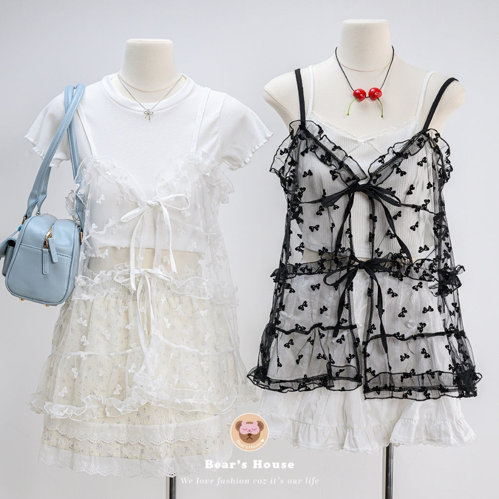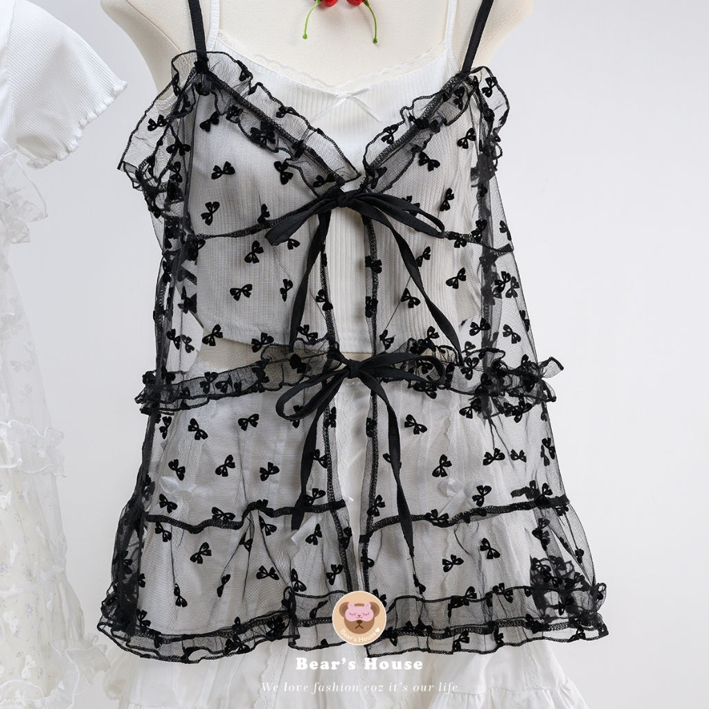 Get ready to turn heads with our Machi Cami Top! This playful cami features a see-through single strap and a unique bow pattern, giving it a fun and flirty look. The adjustable tie at the shoulder allows you to style it as desired, while the bow detail on the front adds a charming touch. Pair it with a cropped t-shirt or tank top for an effortlessly cute outfit.