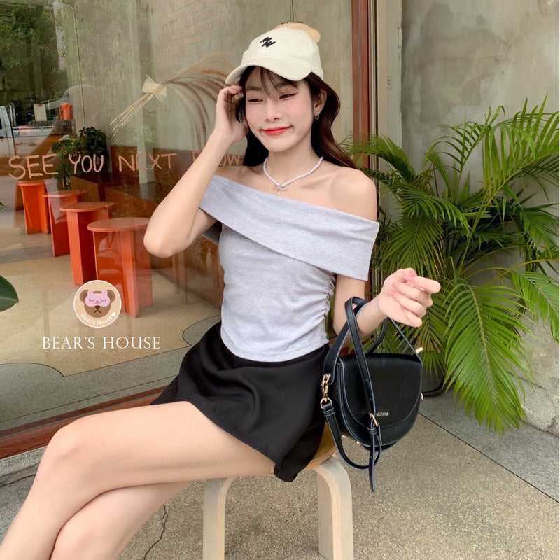 Introducing the Mimi Top, an off-the-shoulder shirt with a folded shape made from super cute and soft Uniqlo fabric. Enjoy the comfort and stretch as it covers your arms. Perfect with pants or skirts, this top is sure to make you feel cute and trendy!