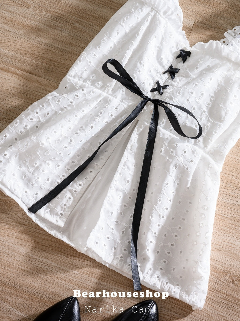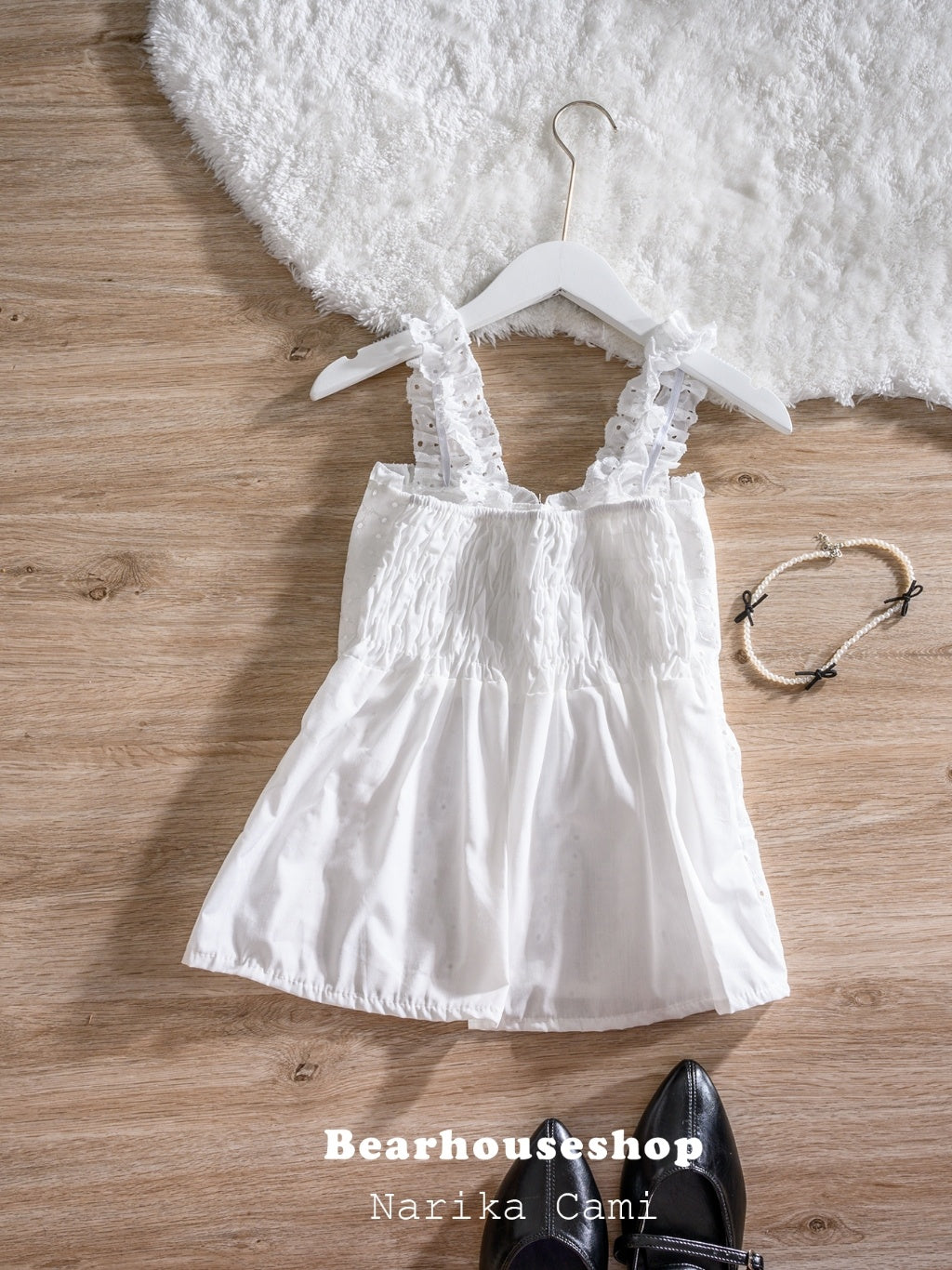 Introducing the Narika Cami - a beautifully embroidered camisole that is both stylish and functional. The openwork embroidery adds a delicate touch and the stretchy shoulder straps and back smock ensure a comfortable fit. With a chic front ribbon, this cami is both elegant and modest.
