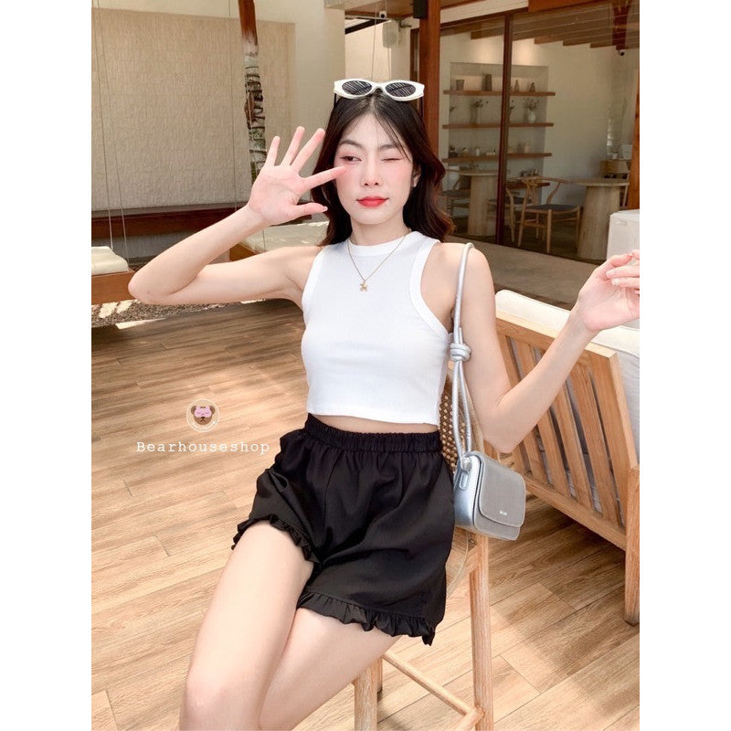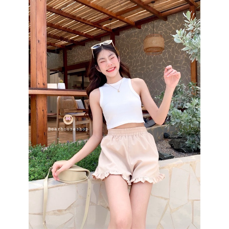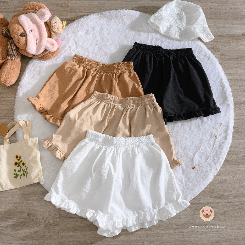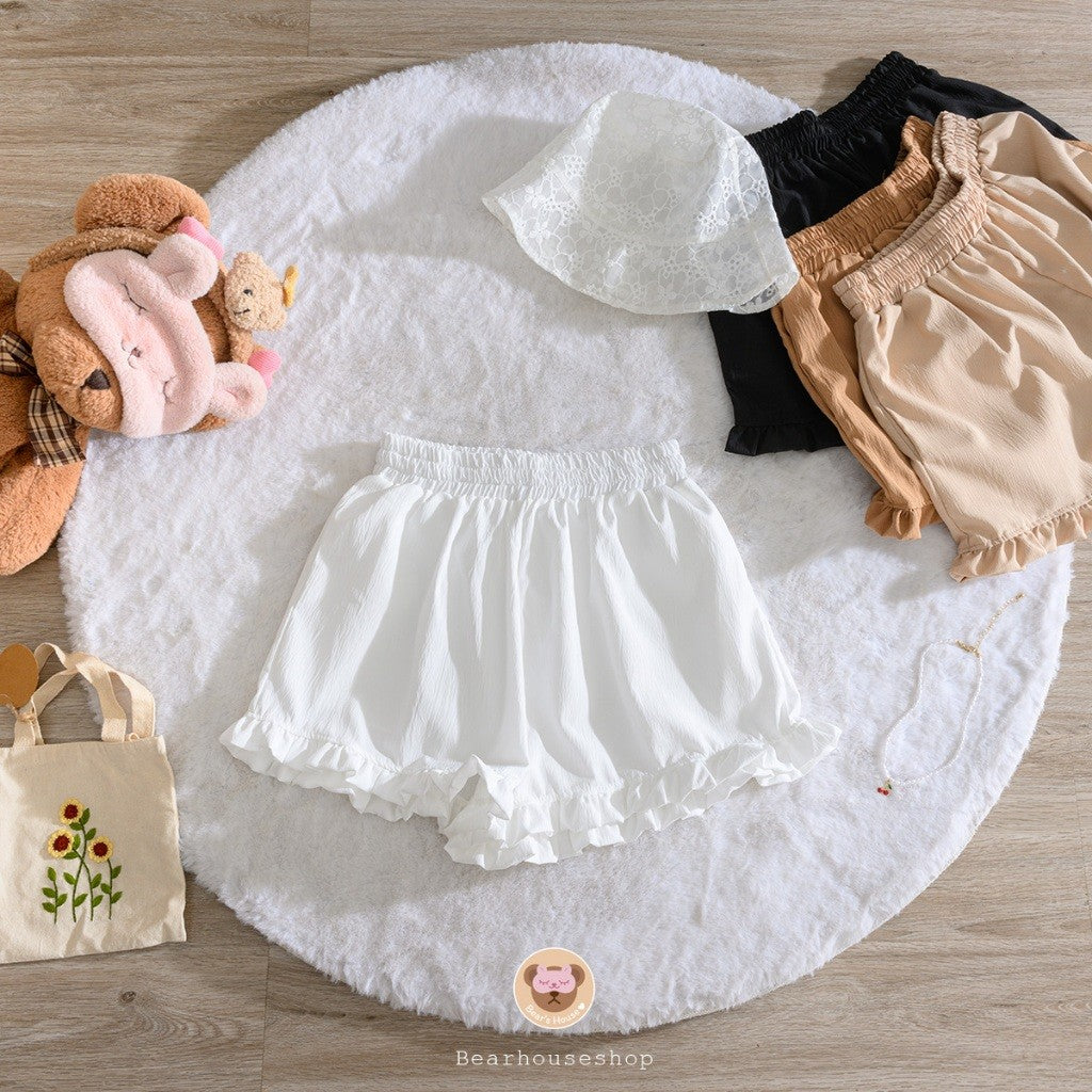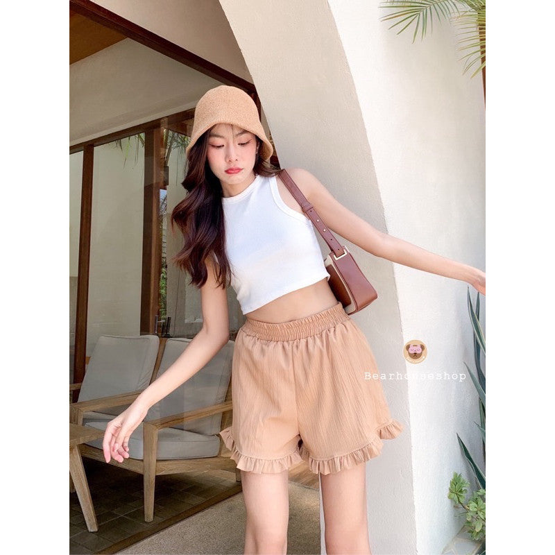 Get ready to rock your style with our Pongo Pants! Made from comfortable bark fabric, these shorts feature a ruffled hem and an elastic waistband for the perfect fit. With side pockets and a cute crop top, they're versatile enough to wear to sleep or a cafe. You'll never want to take them off!