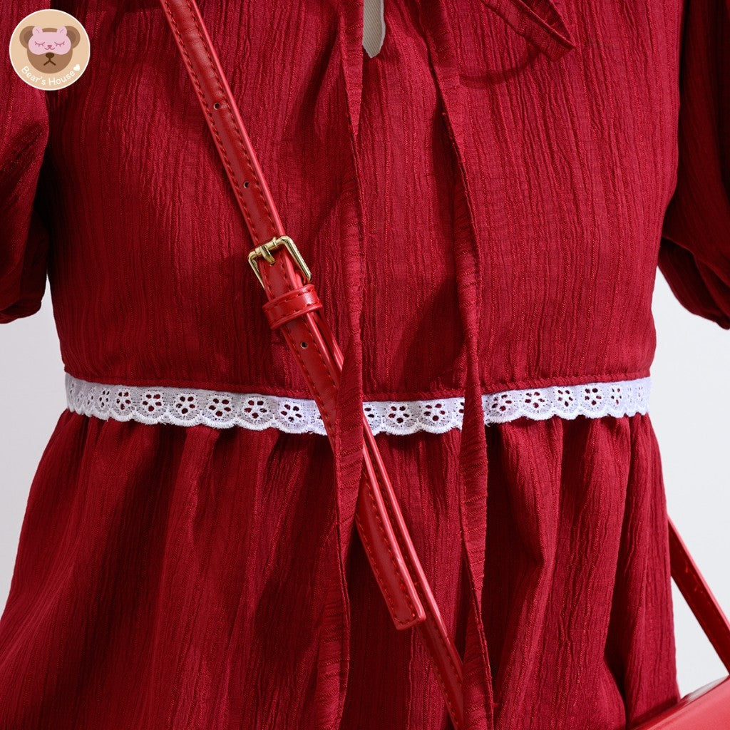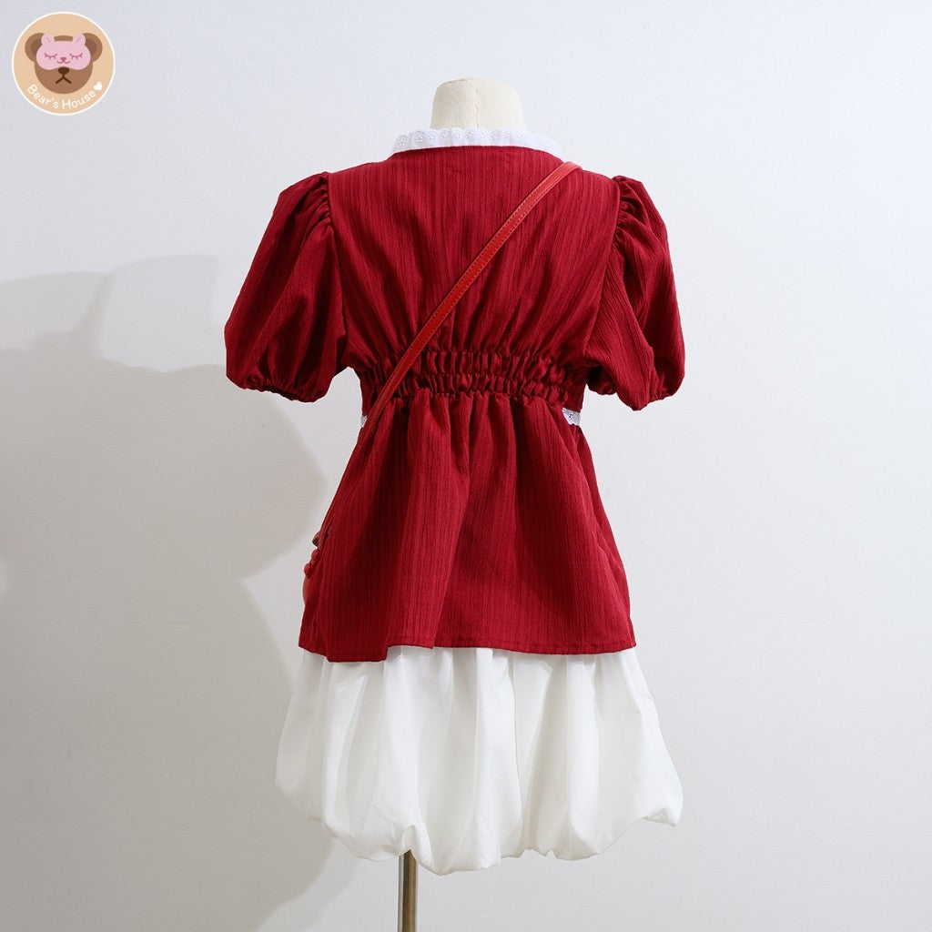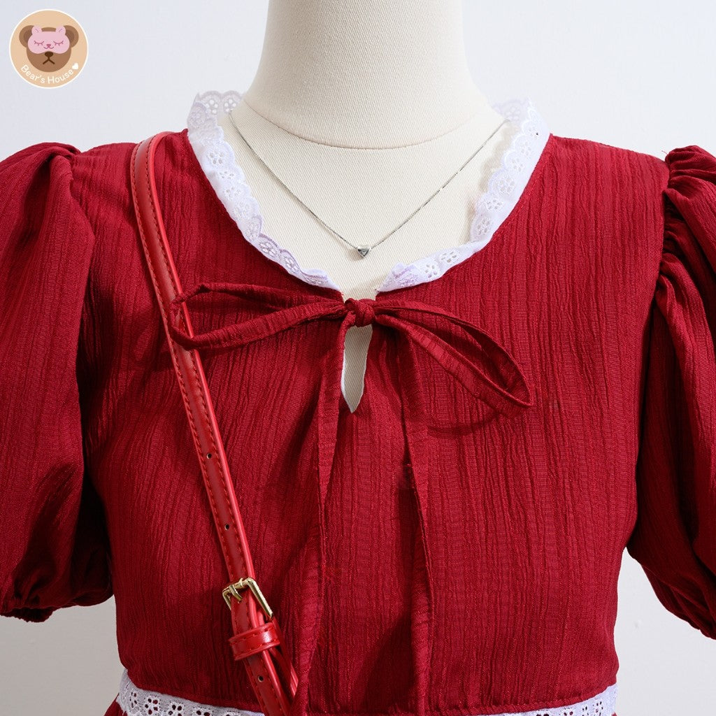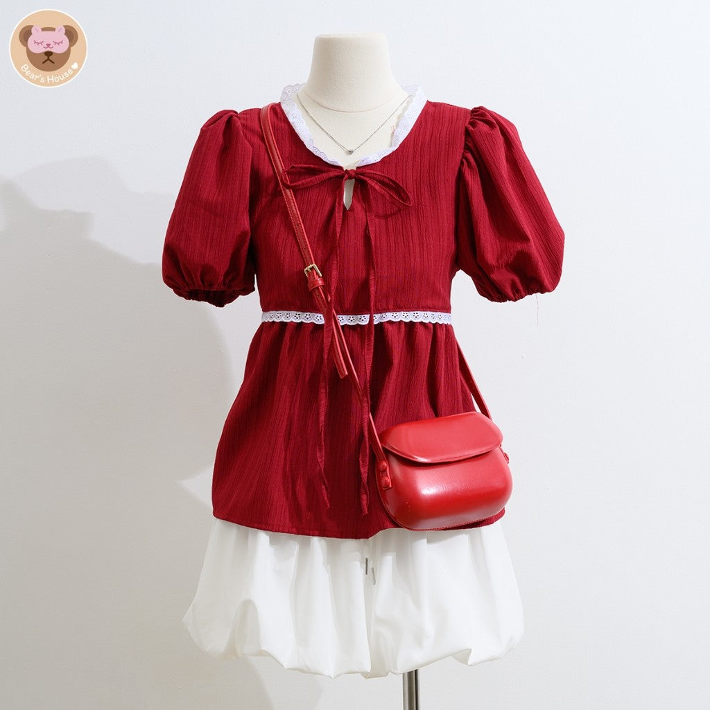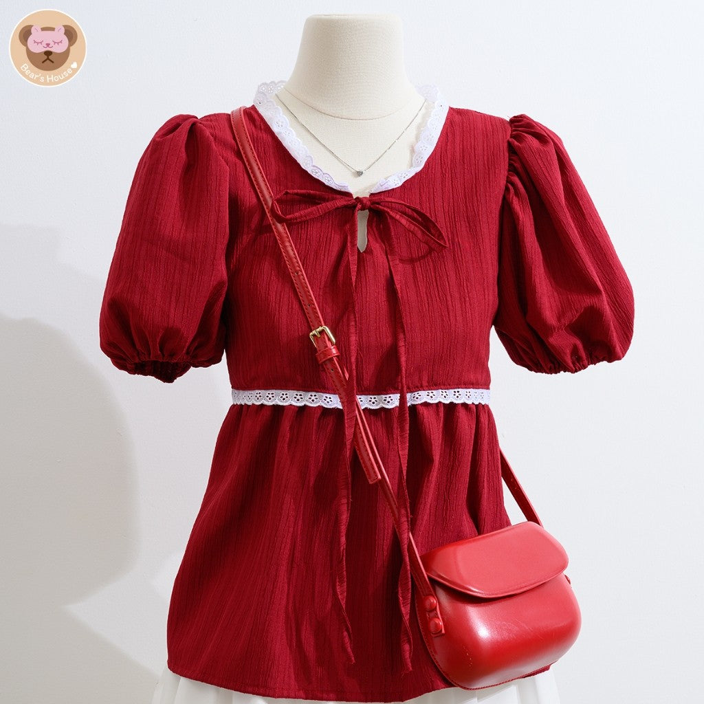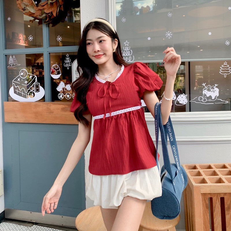 Richie Top เสื้อแขนพองแต่งคอลูกไม้ ผูกโบว์น่ารักมากๆ🎀