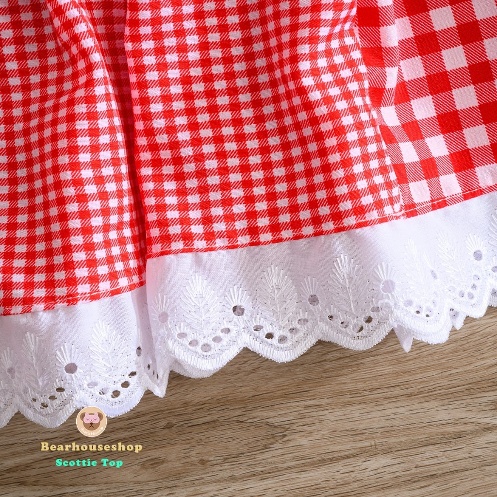 Embrace the quirkiness of the Scottie Top! This top features a playful Scottish lace design and an adjustable single strap in the back. Match it with skirts or pants for a cute and versatile outfit. And don't forget, red is the colour of the year - it'll make your skin stand out! 😍