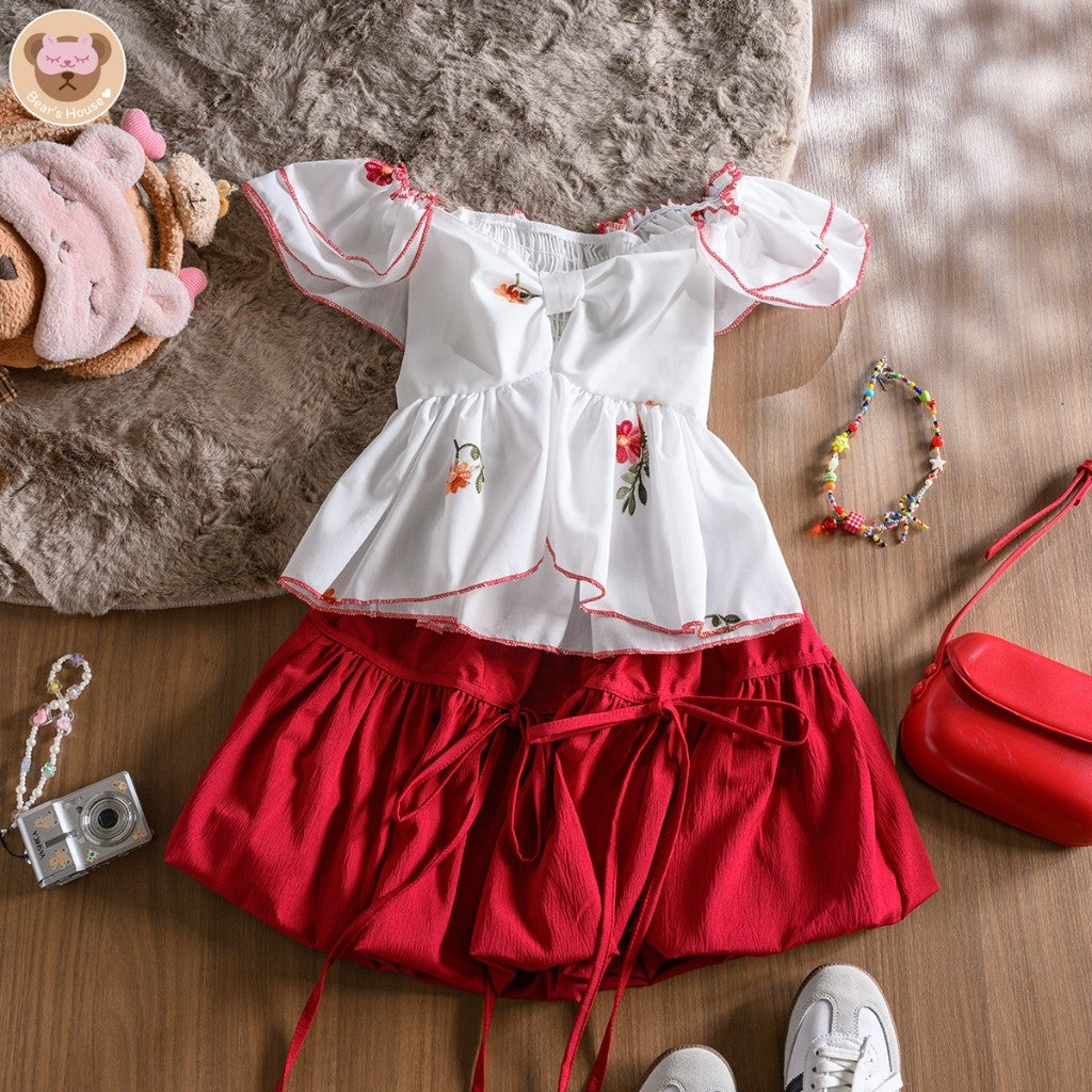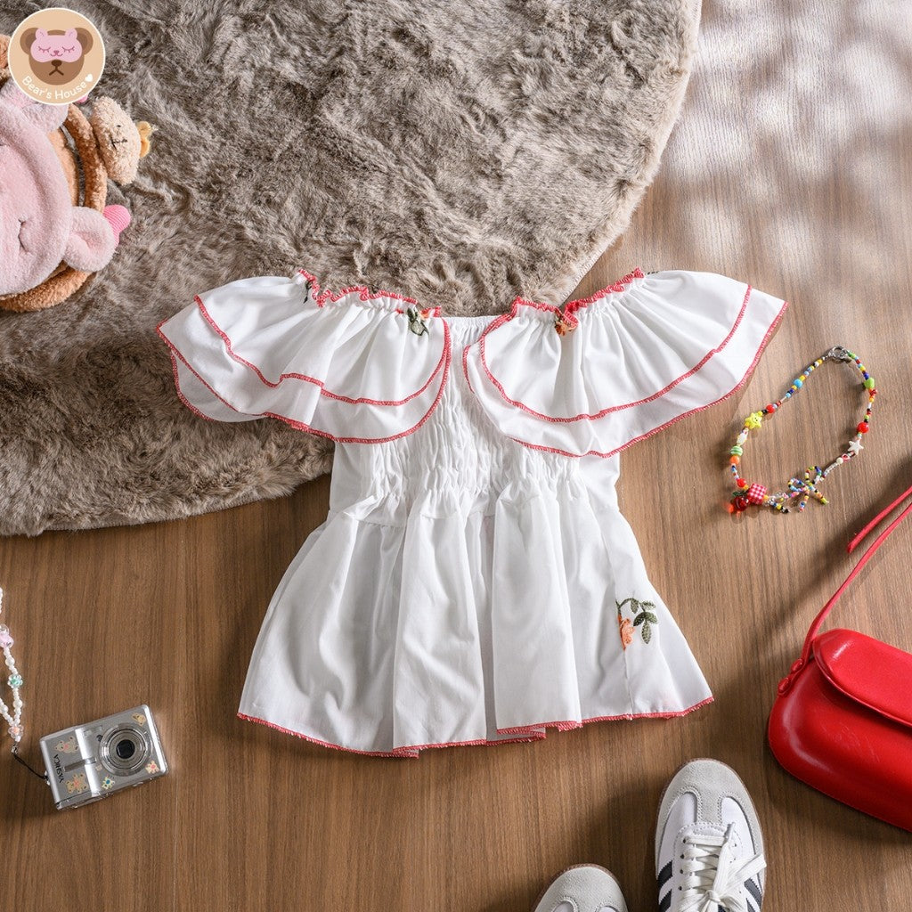 Shawty Top เสื้อเเขนระบาย 2 ชั้น เเต่งโบว์ด้านหน้า