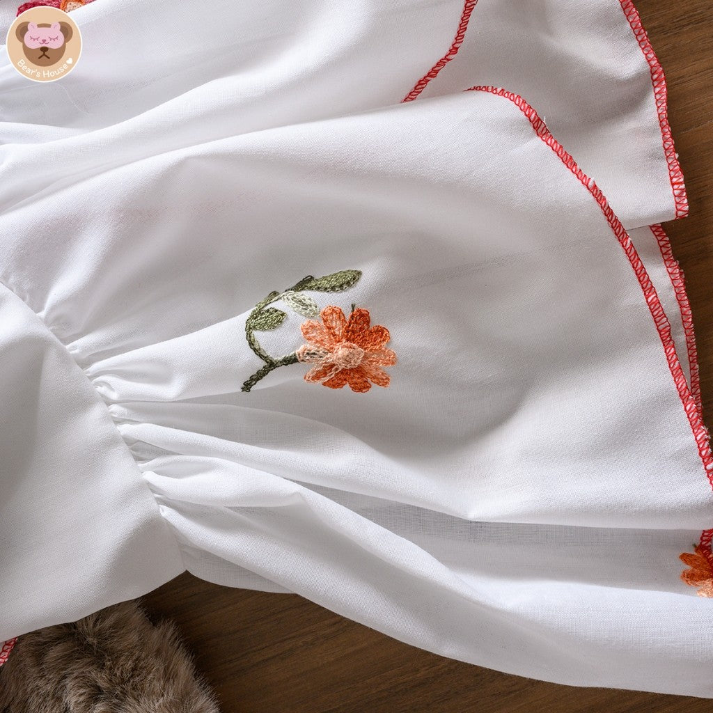 ปักสวย ปักนูน ลายดอกใหญ่ เดินด้ายแดงทั้งตัว