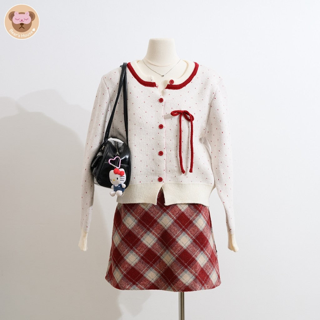 Snow Sweater เสื้อเเขนยาวไหมพรม เเขนพองพิมพ์ลายโบว์ ทรงโอเวอร์ไซส์