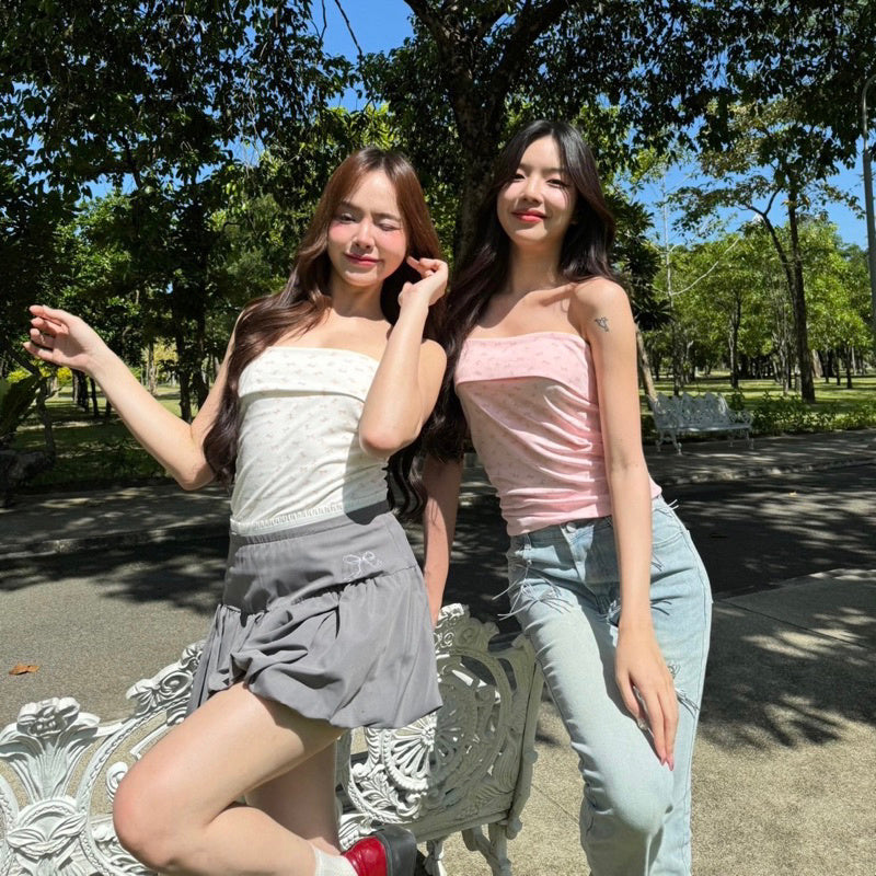 This Tube Bow Top is perfect for anyone looking to add a touch of cuteness to their wardrobe. With its strapless design and charming bow pattern, it's sure to be a hit. The fabric is just the right thickness, making it comfortable and flattering to wear. Plus, it pairs seamlessly with both skirts and pants. She's a real beauty! ❤️